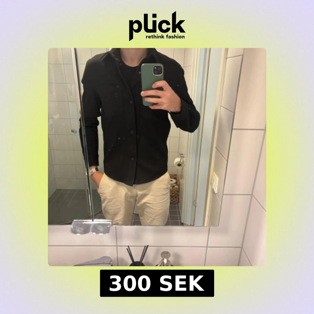 Stilren svart overshirt från Zara med klassisk krage, två bröstfickor och knappar framtill. Skjortan har lång ärm och en clean look som passar till många outfits. Storlek S men sitter som M, passar mig bra som är 187 lång. Endast använd en gång, nyskick aldrig tvättad.