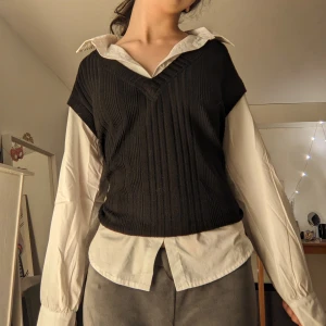 Skjortan och västen sitter ihop! Nyskick! Den är från shein därav priset. På bilden är jag 170 cm lång och har vanligtvis strl S/26💓 Kan även mötas upp i Uppsala! OBS det går inte att separera skjortan och västen!