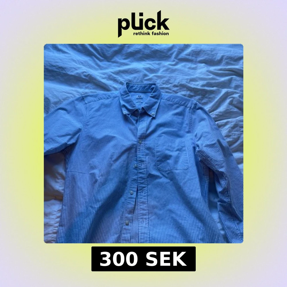 Snygg blåvit randig skjorta från Uniqlo i slim fit-modell. Skjortan har klassisk krage med knappar, bröstficka och långa ärmar. Perfekt för dig som gillar stilrena och fräscha plagg. Tillverkad i mjuk bomull för skön känsla hela dagen.