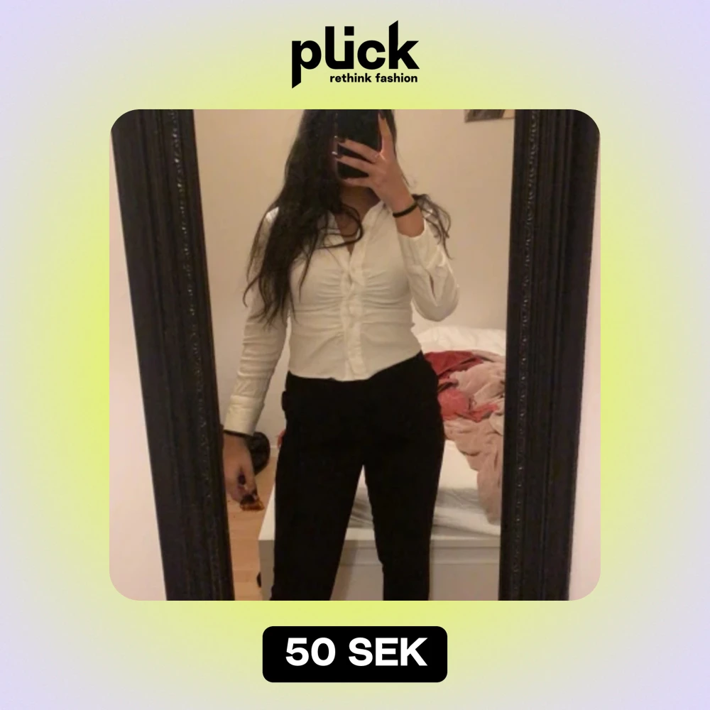Säljer en snygg vit blus med knappar framtill. Den är långärmad och har en tight passform som framhäver figuren. Perfekt för både vardag och fest! 💖