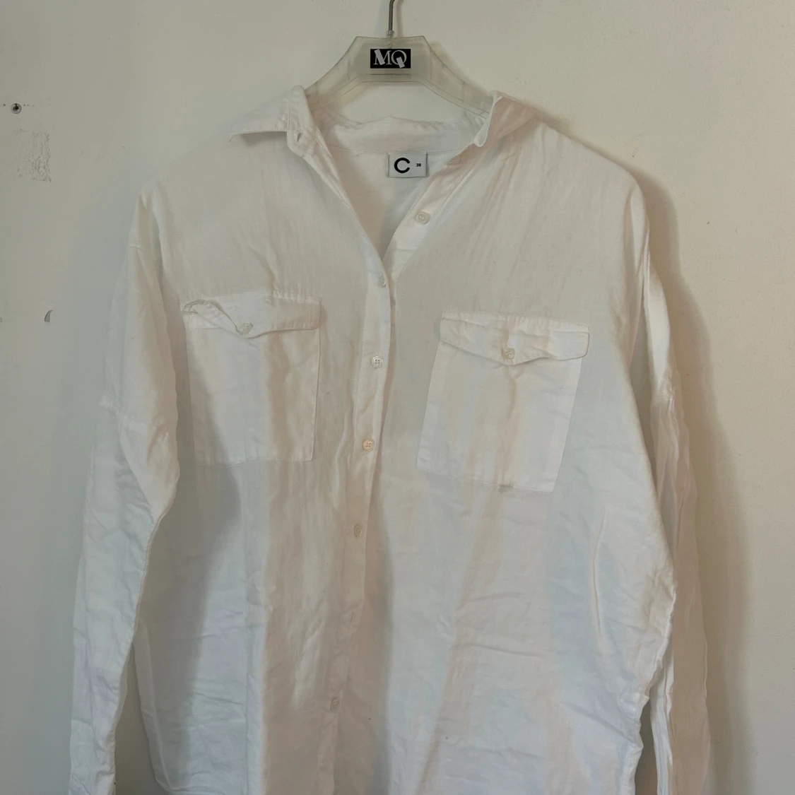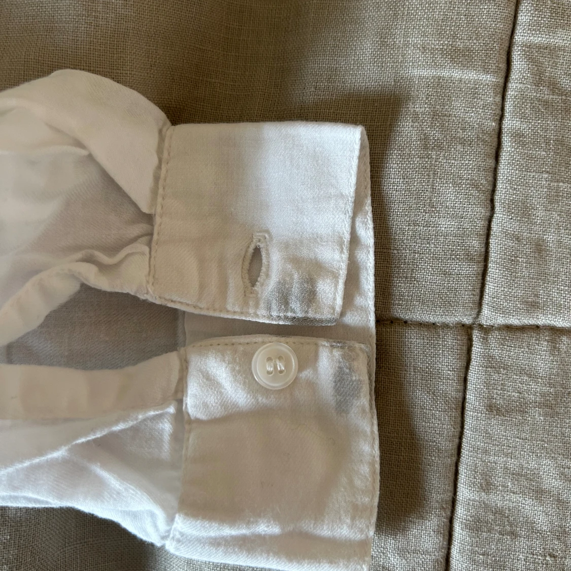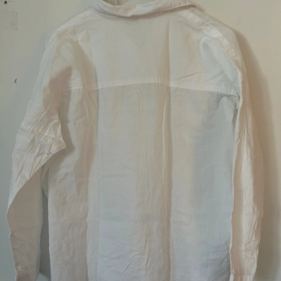 Vit superfin oversized skjortađ€ smĂ„ missfĂ€rgningar vid armen. SĂ€ljer för har för mĂ„nga vita skjortor!