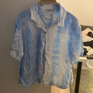 Mörkblå denim topp  - Säljer en mörkblå overshirt/ topp i denim med två stora fickor framtill och korta ärmar. Super fin topp som dock aldrig kommit till använd då jag redan har en liknade. Passar super bra till blåa jeans eller svarta kostymbyxor.