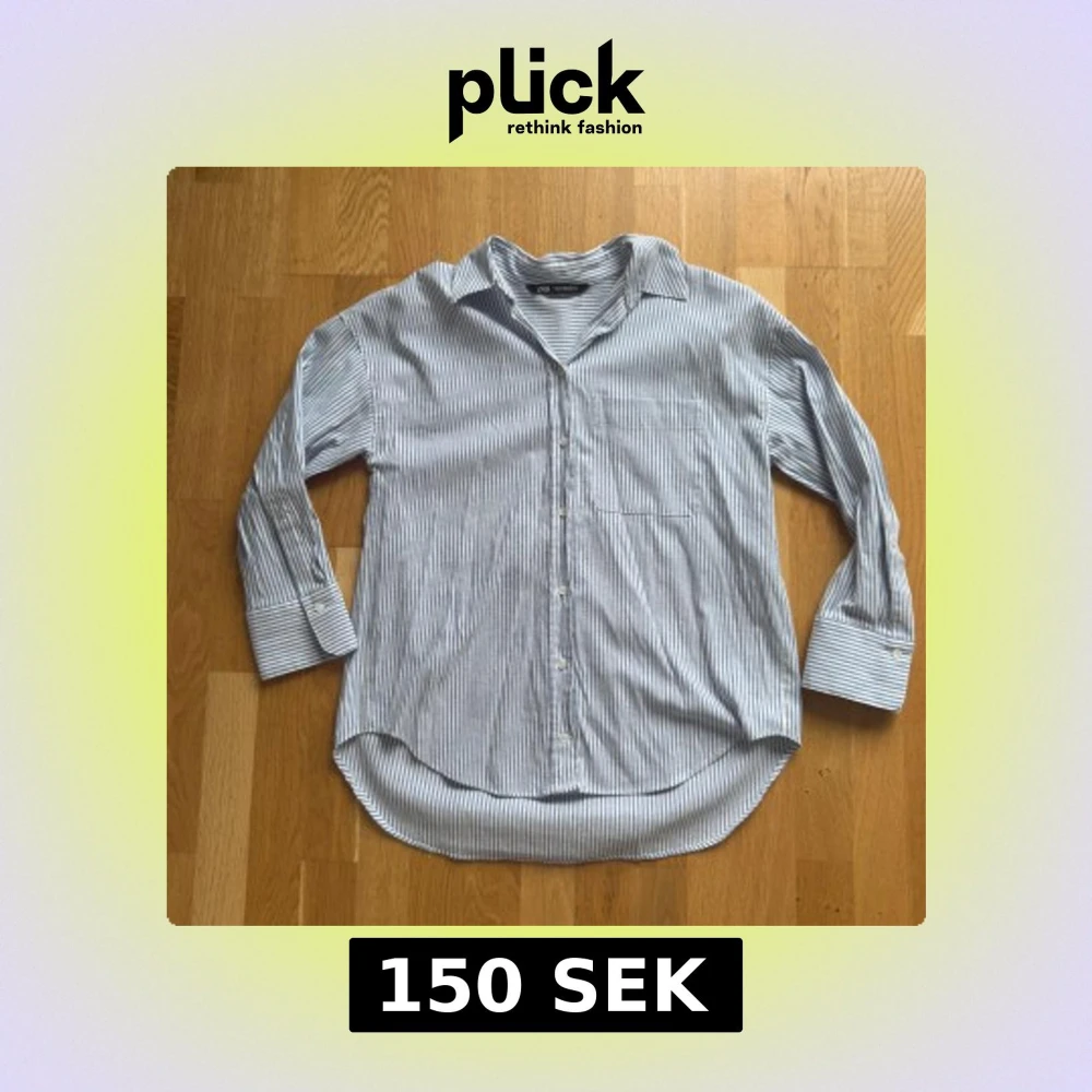 Snygg skjorta från Zara i vitt och blått med tunna vertikala ränder. Klassisk krage, bröstficka och knäppning framtill. Skjortan är tillverkad i en mjuk blandning av och polyester, perfekt för en chill och stilren look. I väldigt fint skick, knappt använd.