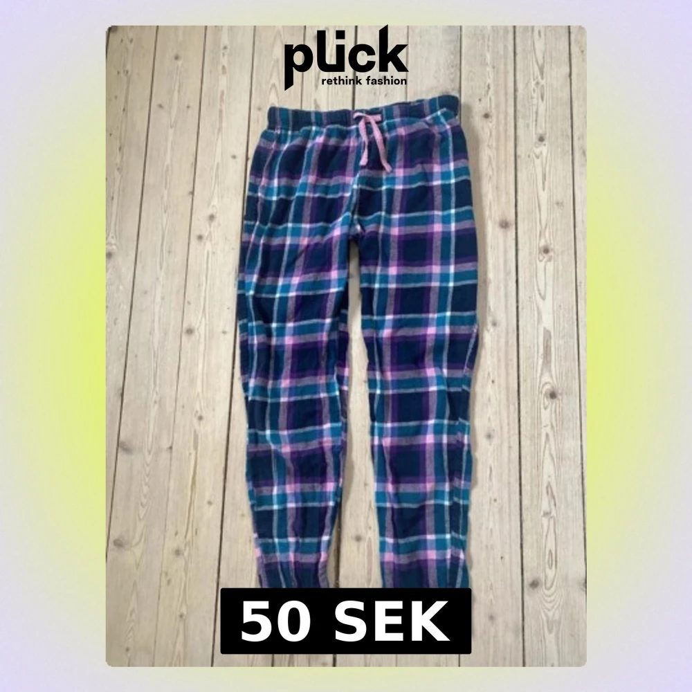 Söta pyjamasbyxor med rutigt mönster och rosa snören 💗