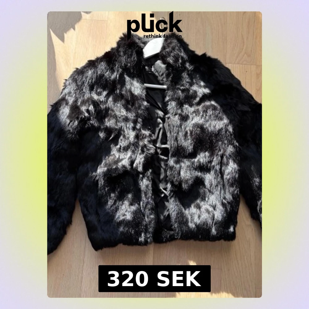 Snygg och lyxig svart pälsjacka. Står 12 på lappen men Storlek mer som liten s eller xs. Dragkedja som funkar utan problem. Kaninpäls, står dyed rabbit fur på lappen. Fur original: france Ser ut som det gör på bilderna vid fickorna, inget som är trasigt och syns inte om man inte drar i fickorna.