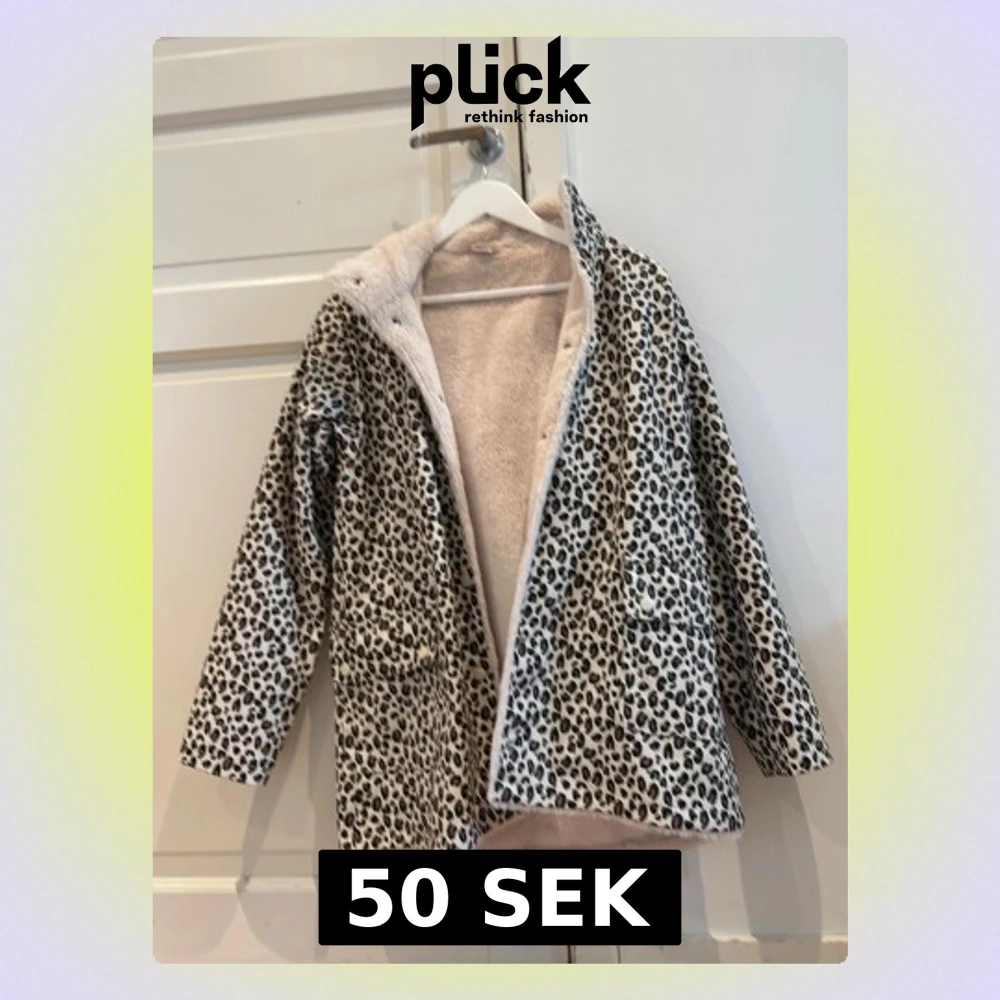 Säljer en snygg leopardmönstrad pälsjacka/regnjacka med mjukt, ljust foder. Jackan har två fickor framtill och stängs med tryckknappar. Perfekt för dig som vill sticka ut och hålla dig varm under vintern. Materialet är fuskpäls och jackan har en rak passform.