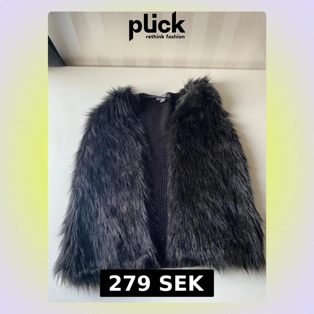 Snygg svart pälsväst med lång, från primark och mjuk fuskpäls framtill och stickad baksida. Västen har en öppen design utan knäppning och är helsvart, vilket gör den enkel att matcha. Perfekt för att addera lite edge till din outfit.