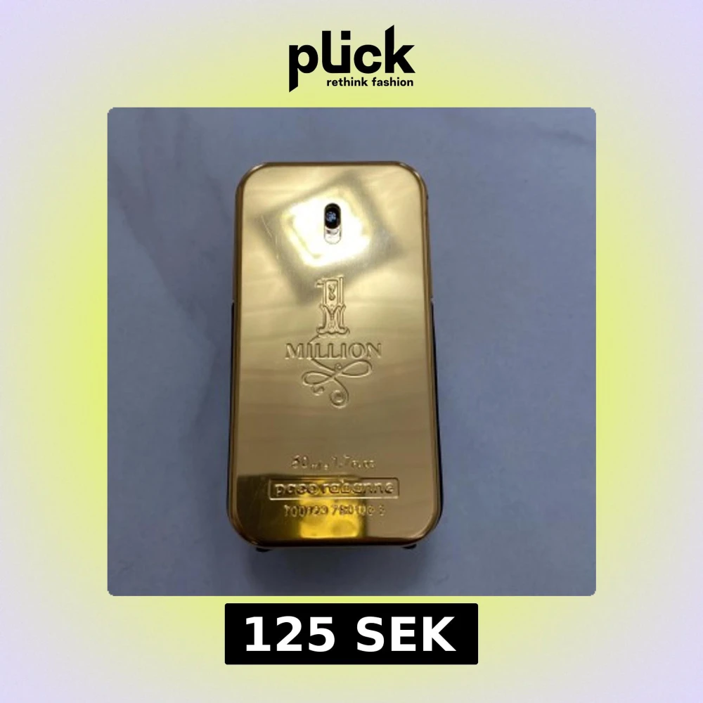 Säljer en ikonisk herrparfym, 1 Million från Paco Rabanne. Flaskan har en lyxig guldfärgad framsida och svart baksida, formad som en guldtacka. Doften är kryddig och söt med inslag av läder och kanel. Skador har förekommit på varan. Den funkar som den ska. Ca 1/4 kvar av 50ml. Kan förekomma smuts på insidan.