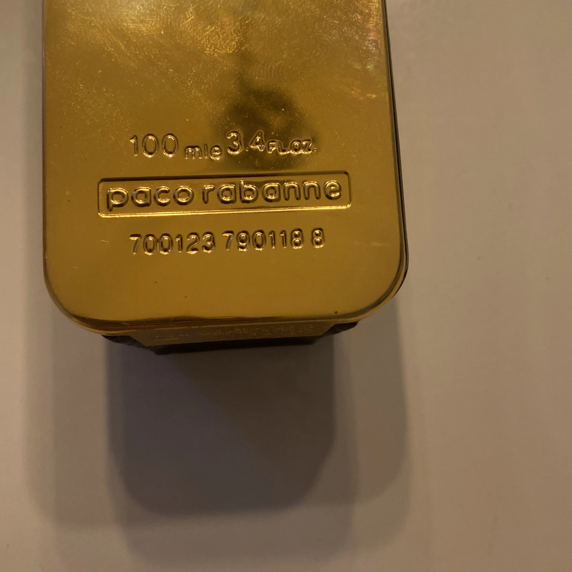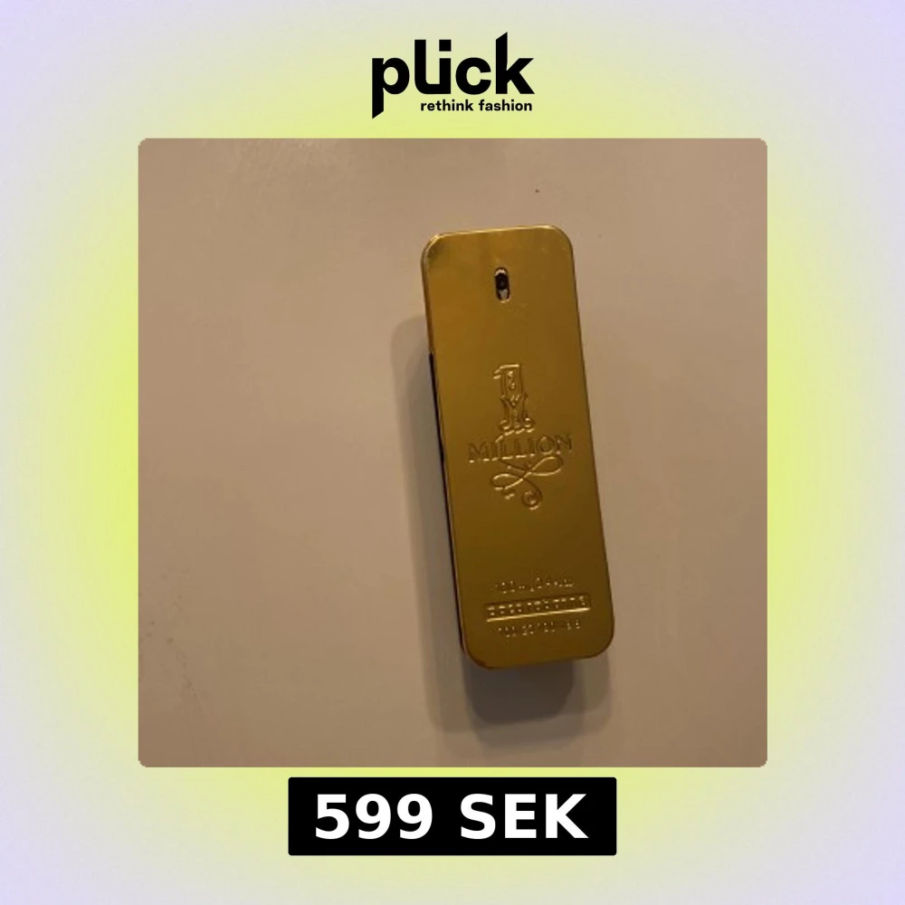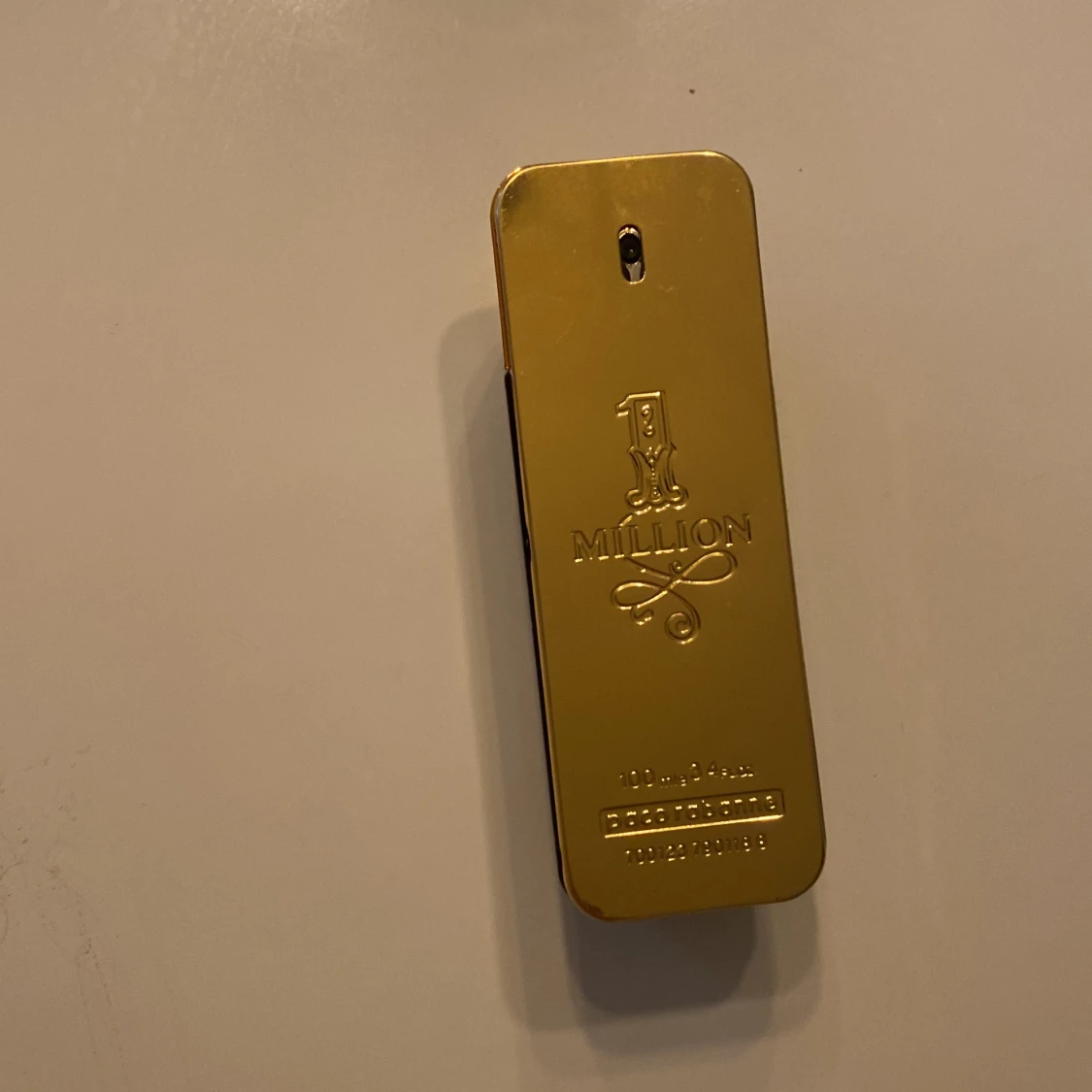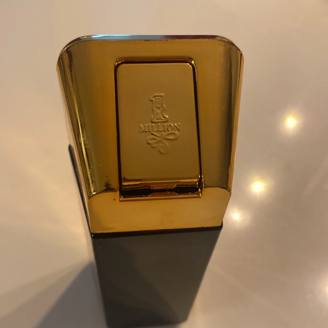 Säljer en flaska 1 Million Eau de Toilette från Paco Rabanne. Den är nästan helt full använd några gånger bara. Flaskan är i guld och rymmer 100 ml. Den har en lyxig design som påminner om en guldtacka. Perfekt för den som vill ha en doft med stil och elegans.