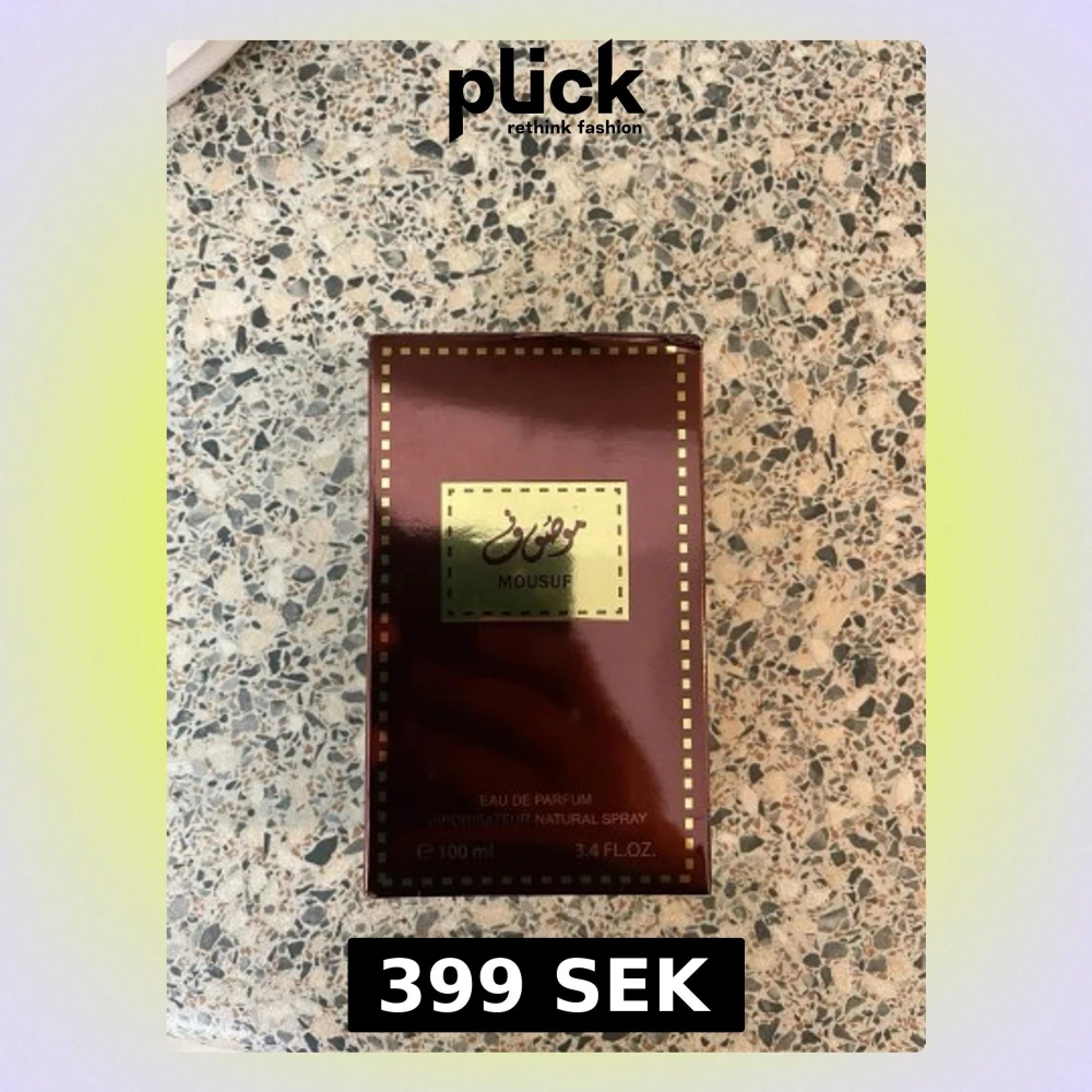 Lyxig parfym från Mousuf i en elegant, fyrkantig glasflaska med guldigt lock. Flaskan har en brun etikett med gulddetaljer och rymmer 100 ml Eau de Parfum. Doften kommer i en matchande brun och guld kartong som ger en exklusiv känsla.