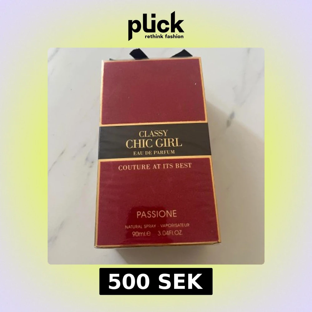 Lyxig parfym Classy Chic Girl Passione Eau de Parfum i elegant vinröd och svart kartong med gulddetaljer. Flaskan rymmer 90 ml och är en naturlig spray. Perfekt för dig som gillar exklusiva och trendiga dofter.