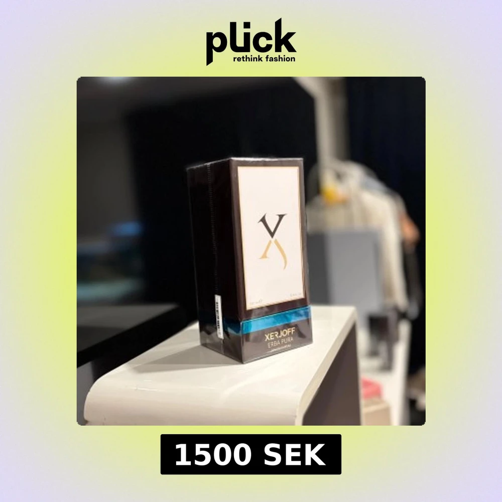 Lyxig parfym från Xerjoff, Erba Pura, helt ny i förpackning, en elegant förpackning. Flaskan rymmer 100 ml och har en stilren design med en svart och guld etikett. Perfekt för den som söker en exklusiv doftupplevelse.