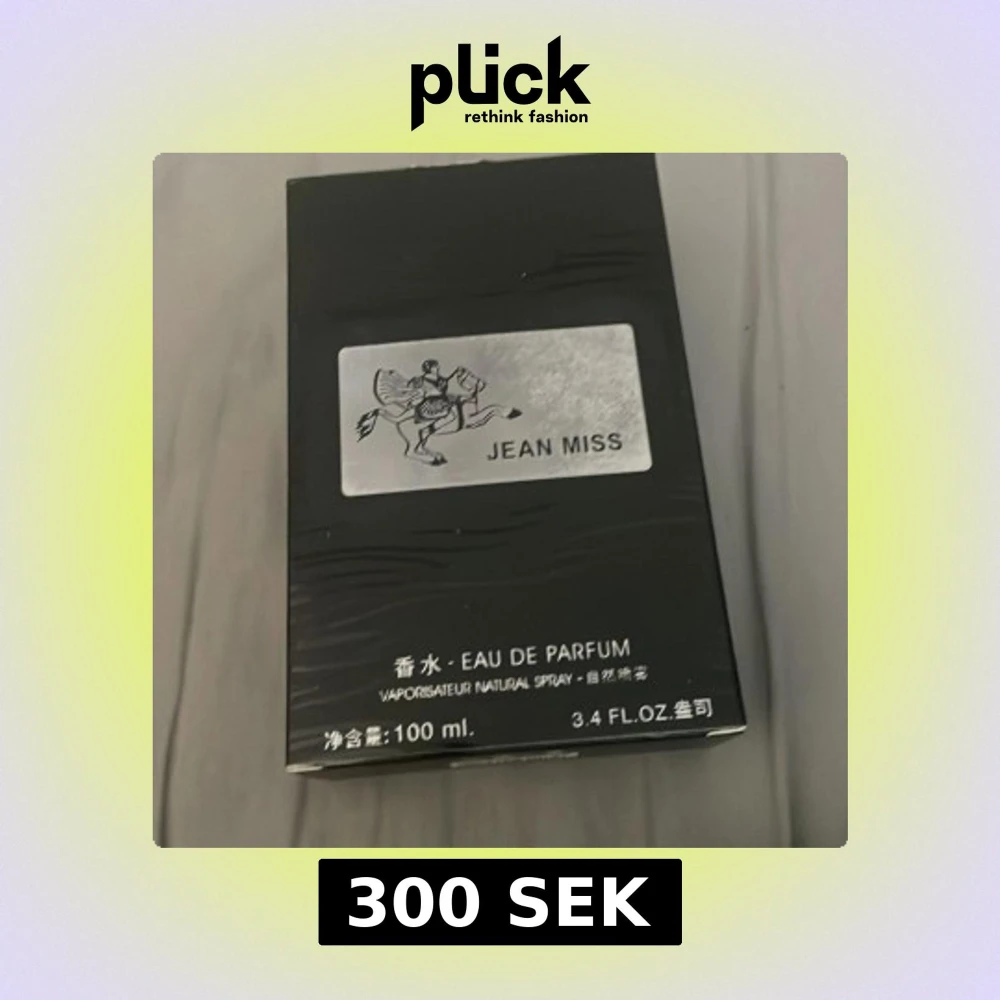 Jean Miss Eau de Parfum i en stilren svart och silverfärgad förpackning. Flaskan är genomskinlig med svart detaljerad etikett och svart lock. Volymen är 100 ml och designen har en modern känsla med en ikonisk ryttare på etiketten.