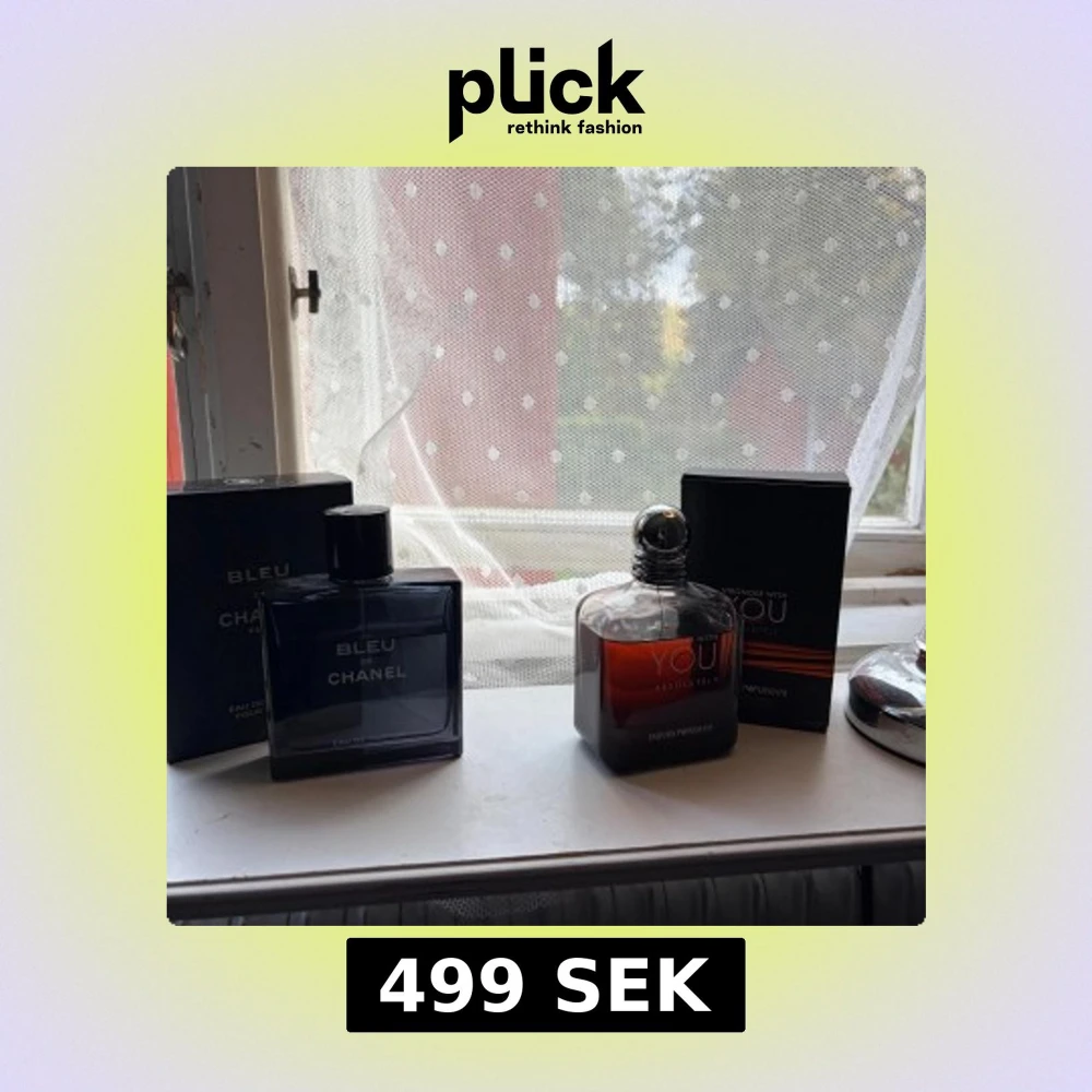Snygga och trendiga parfymer: Bleu de Chanel Eau de Parfum och Emporio Armani Stronger With You Absolutely. Perfekta för dig som vill sticka ut och känna dig fräsch. Volym på Armani: 100 ml (3.4 fl oz). ⚠️Dom håller dåligt!! Köpts på Plick, vet ej om dom förvarats dåligt ellr kopior, därav priset))