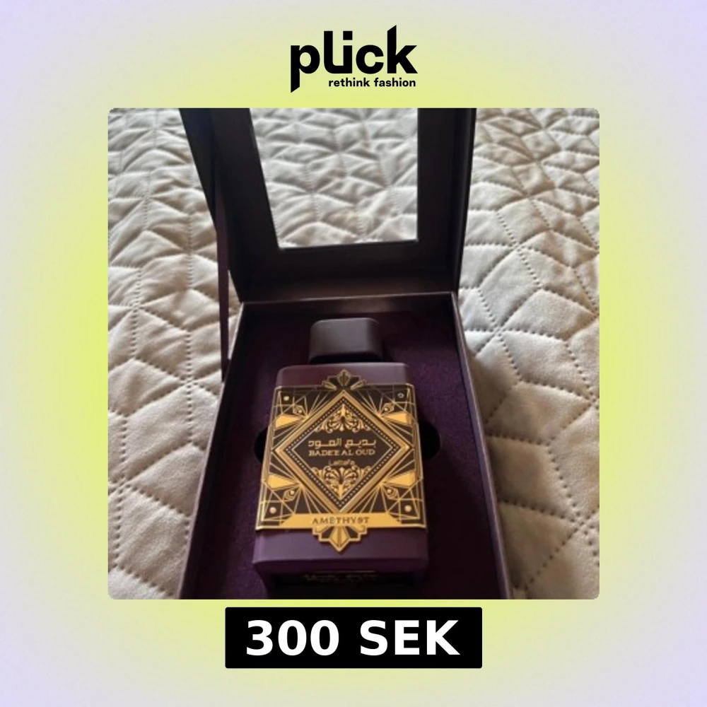 Lyxig parfym från Lattafa, Badee Al Oud Amethyst, i en mörklila flaska med guldfärgade orientaliska detaljer. Kommer i en elegant ask med spegel. Flaskan har en fyrkantig form och exklusiv design som sticker ut.