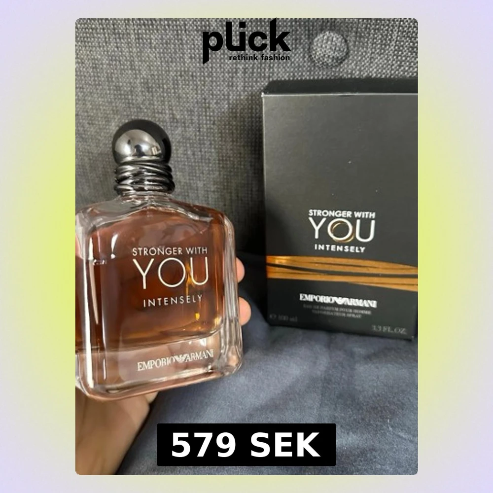 Emporio Armani Stronger With You Intensely är en herrparfym i en elegant, fyrkantig glasflaska med mörk bärnstensfärgad vätska och svart rund kork. Förpackningen är svart med guldiga detaljer och modern design. Doften är intensiv och maskulin, perfekt för dig som vill sticka ut.