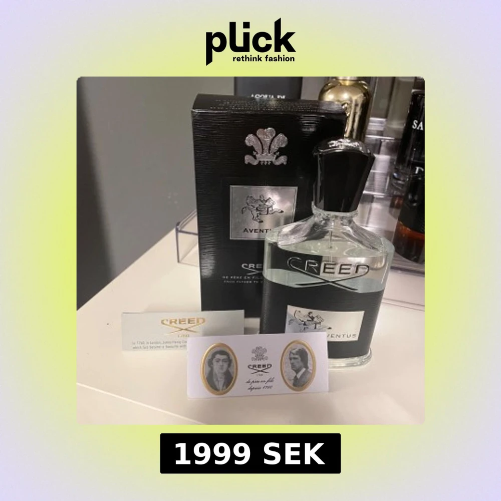 Exklusiv Creed Aventus parfym i en elegant glasflaska med svart och silver detaljer. Flaskan rymmer 100 ml och kommer i en stilren svart förpackning med silverlogotyp. Perfekt för den som söker en lyxig och tidlös doft pris kan diskuteras 😉