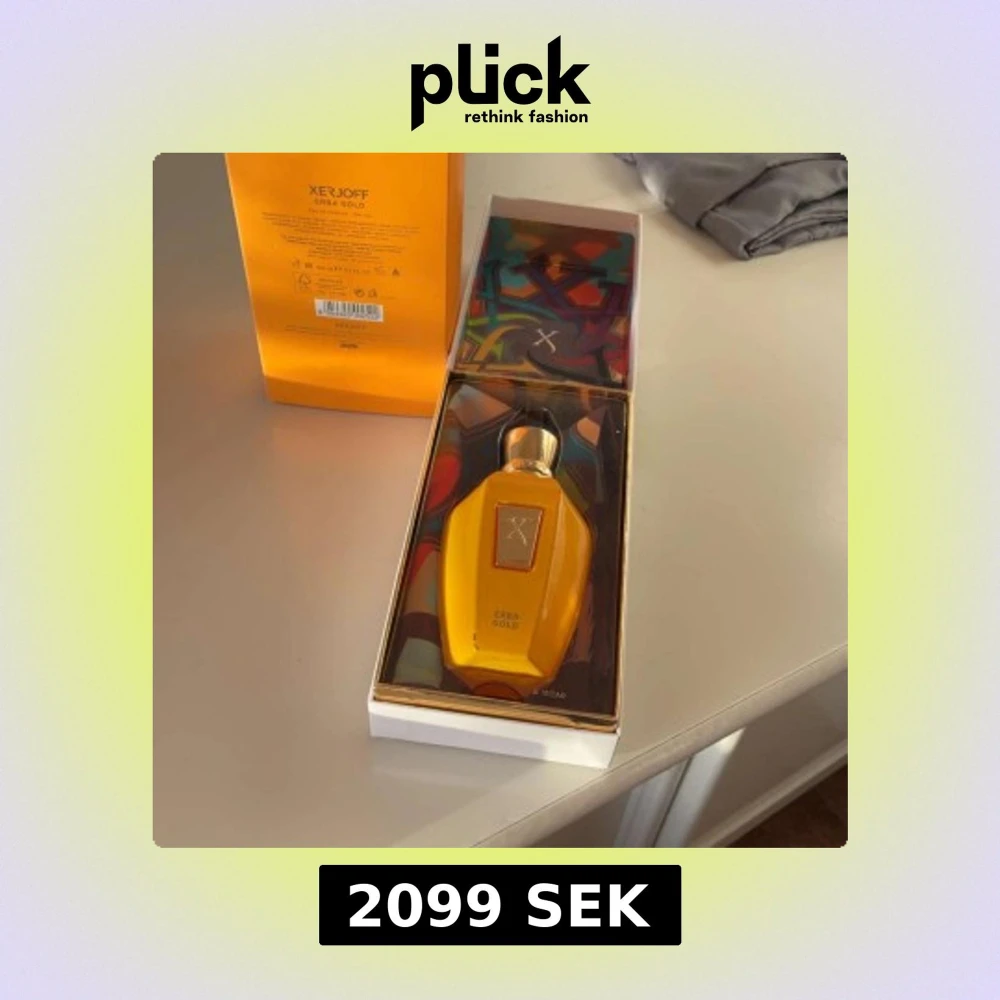Lyxig Erba Gold parfym från Xerjoff i en elegant guldfärgad flaska med silverdetaljer. Flaskan har en unik form och kommer i en färgglad förpackning. Perfekt för den som söker en exklusiv doftupplevelse. Jag tar även byten. Kan fixa ett bra pris vid snabb affär. Nypris är runt 3500. Skulle gissa det är runt 70-75 ml kvar i flaskan. Skriv vid funderingar 🤗
