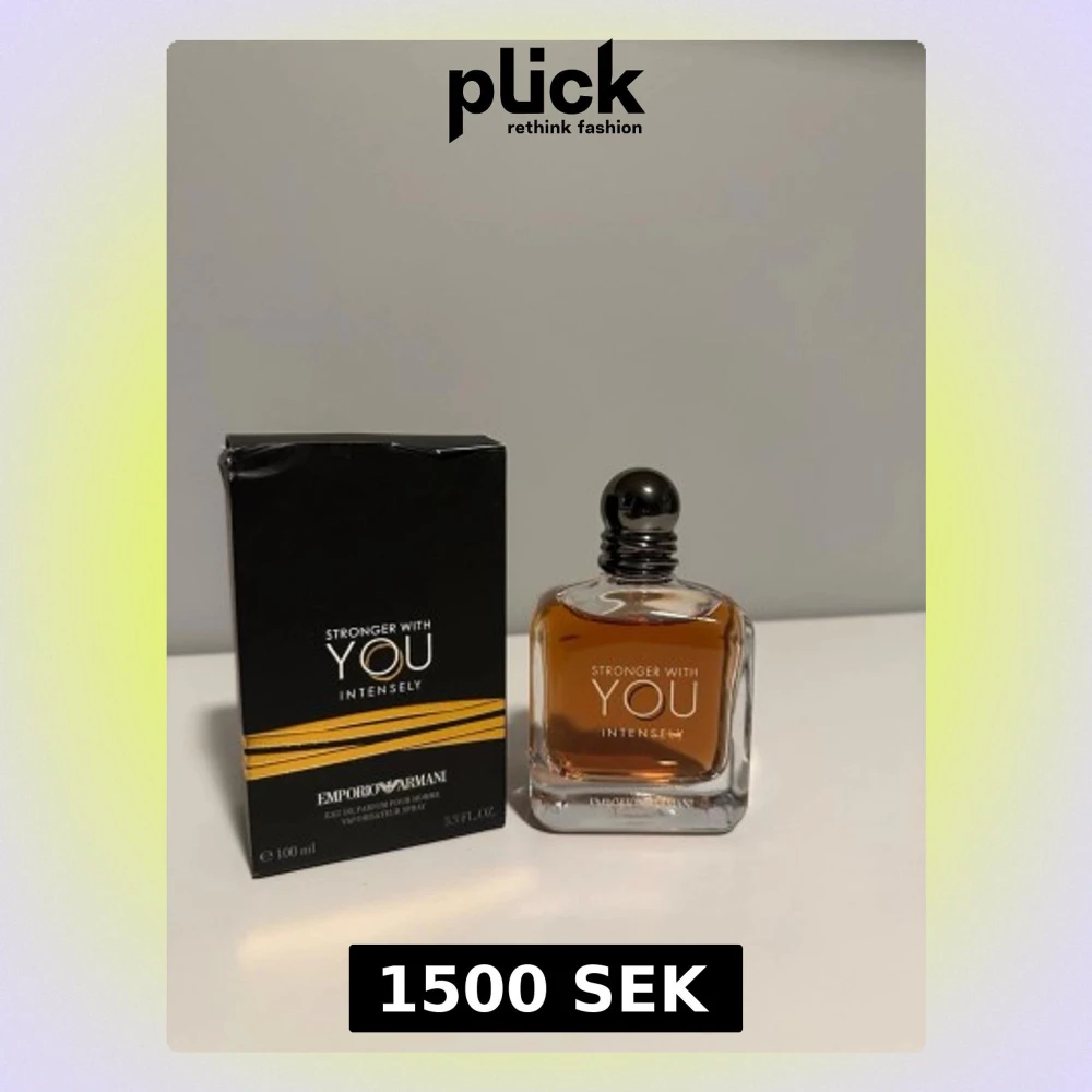 Emporio Armani Stronger With You Intensely är en herrparfym i en elegant, fyrkantig glasflaska med svart rund kork. Doften kommer i en svart kartong med guldiga detaljer och rymmer 100 ml. Flaskan har en varm bärnstensfärgad vätska och en stilren design.
