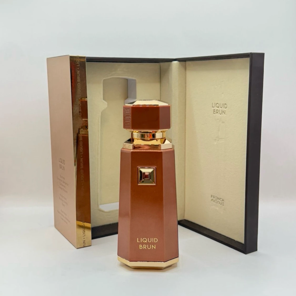 Liquid Brun från French Avenue levereras i en lyxig förpackning med elegant design. Perfekt för dig som vill sticka ut med en unik och stilren parfymflaska. Den är köp från dupesbolaget