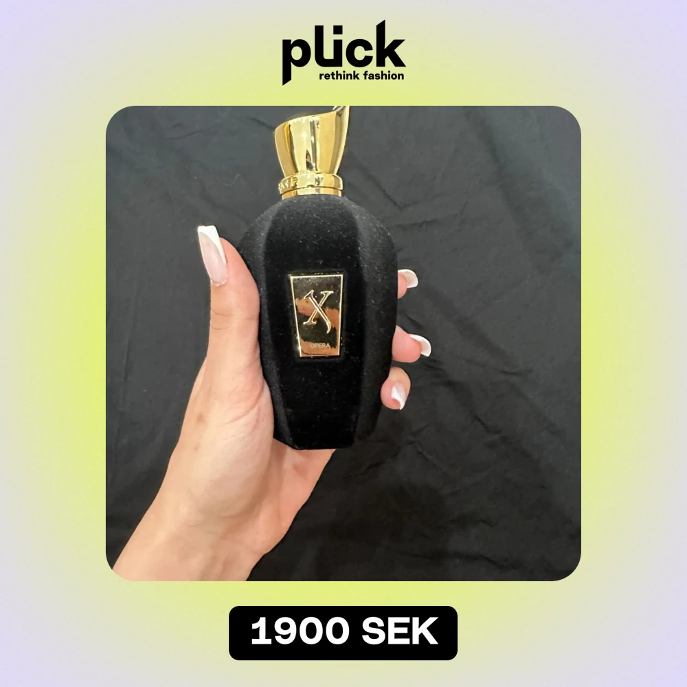 Säljer en exklusiv parfym från Xerjoff med en elegant svart flaska och gyllene detaljer. Flaskan har en unik form och känns riktigt lyxig i handen. Perfekt för den som vill ha något speciellt i sin doftsamling. Flaskan rymmer 100 ml och är tillverkad i Italien.