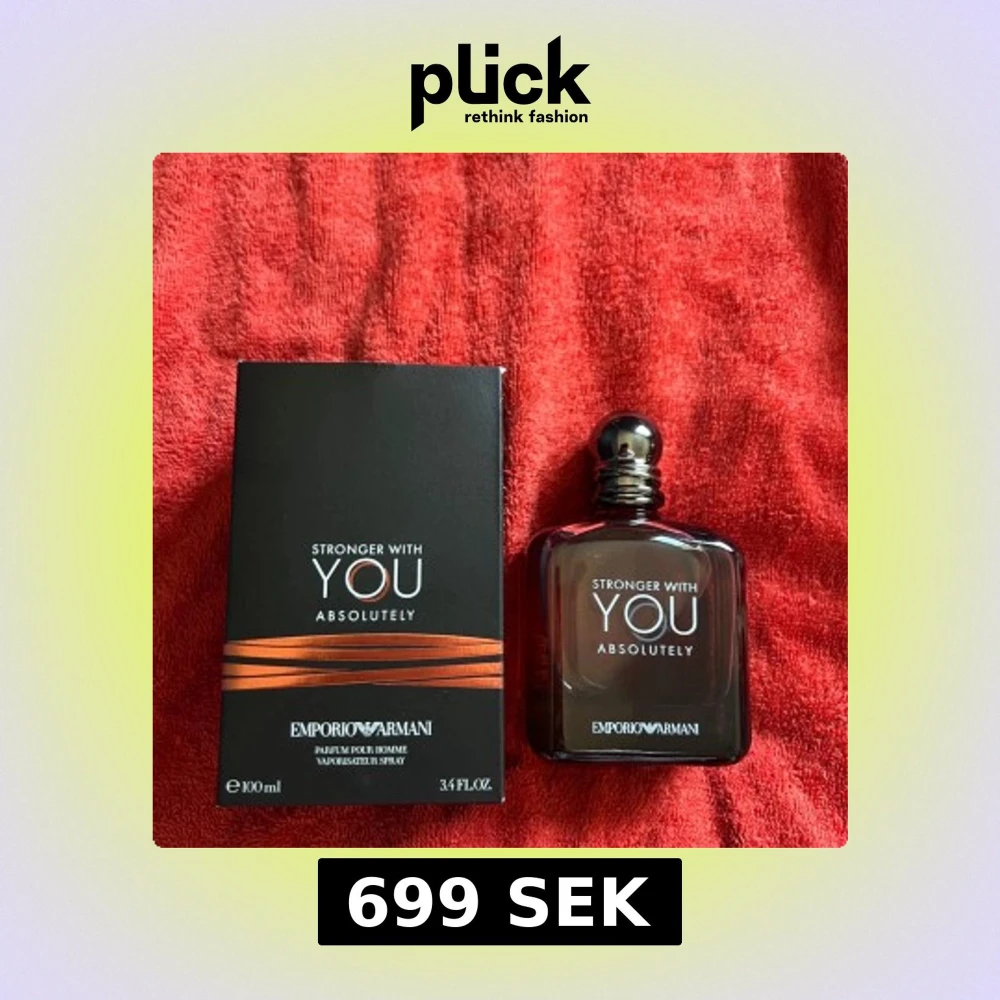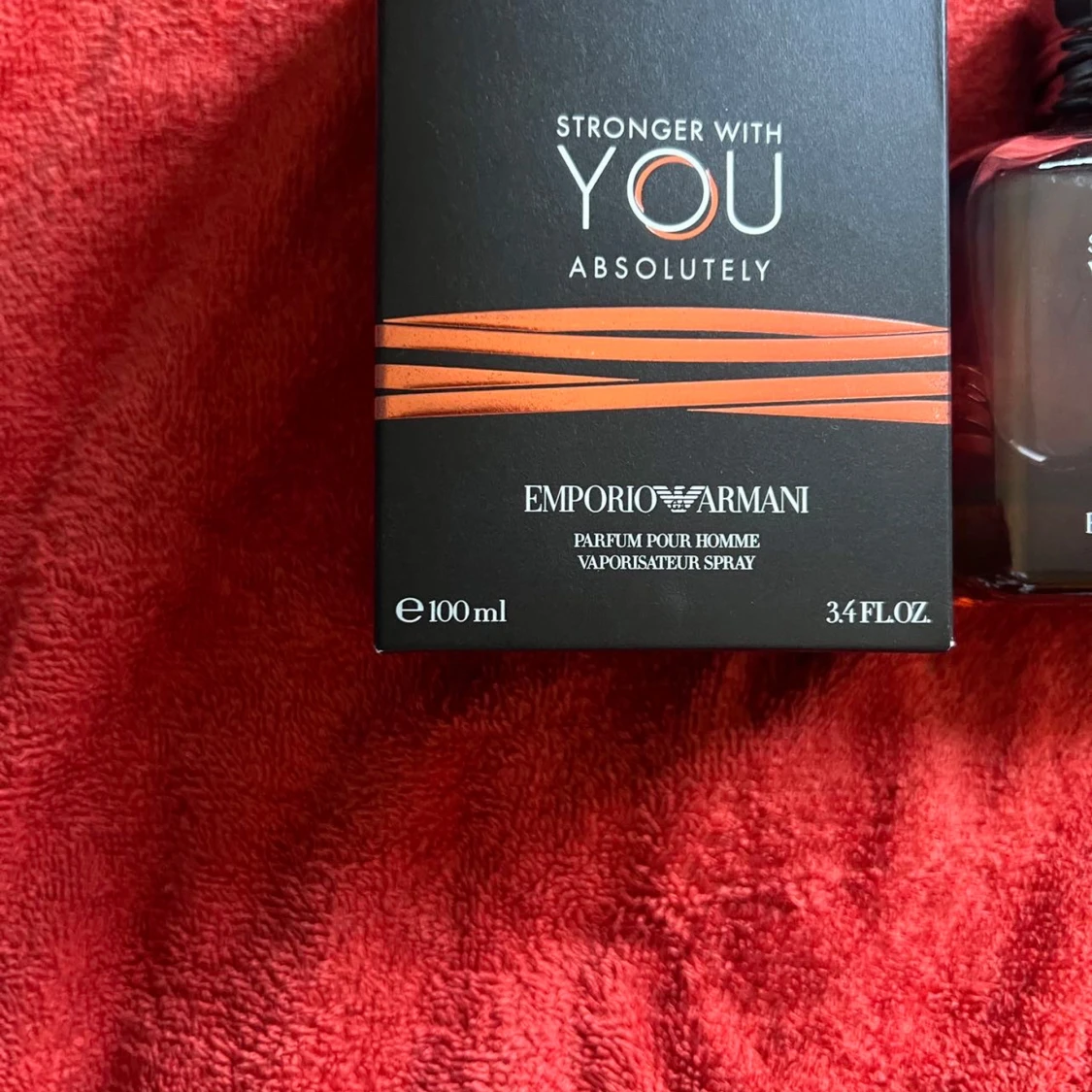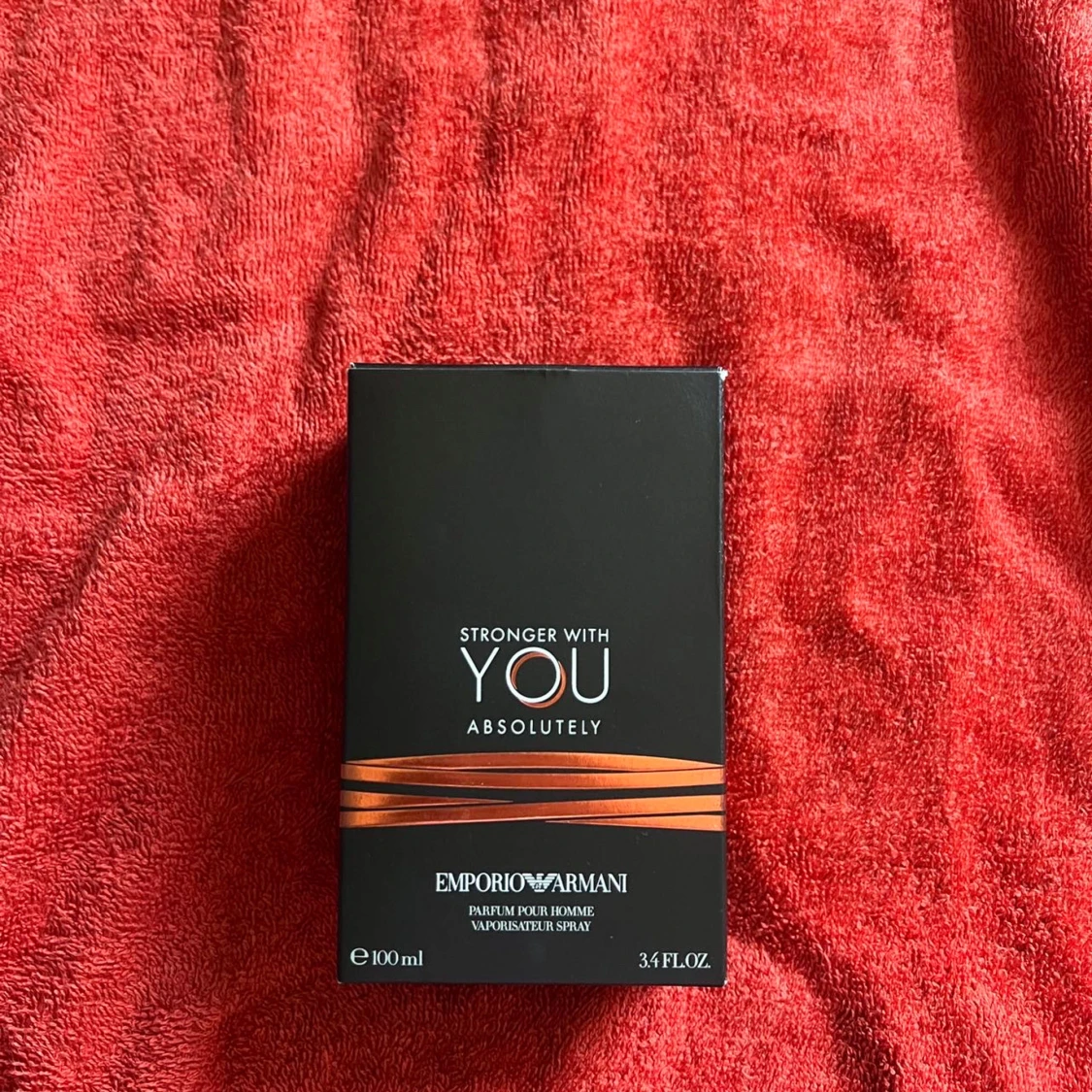 Stronger With You Absolutely är en herrparfym från Emporio Armani. Flaskan är mörkbrun med rundad form och silverfärgad kork. Förpackningen är svart med kopparfärgade linjer och vit text. Innehåller 100 ml.