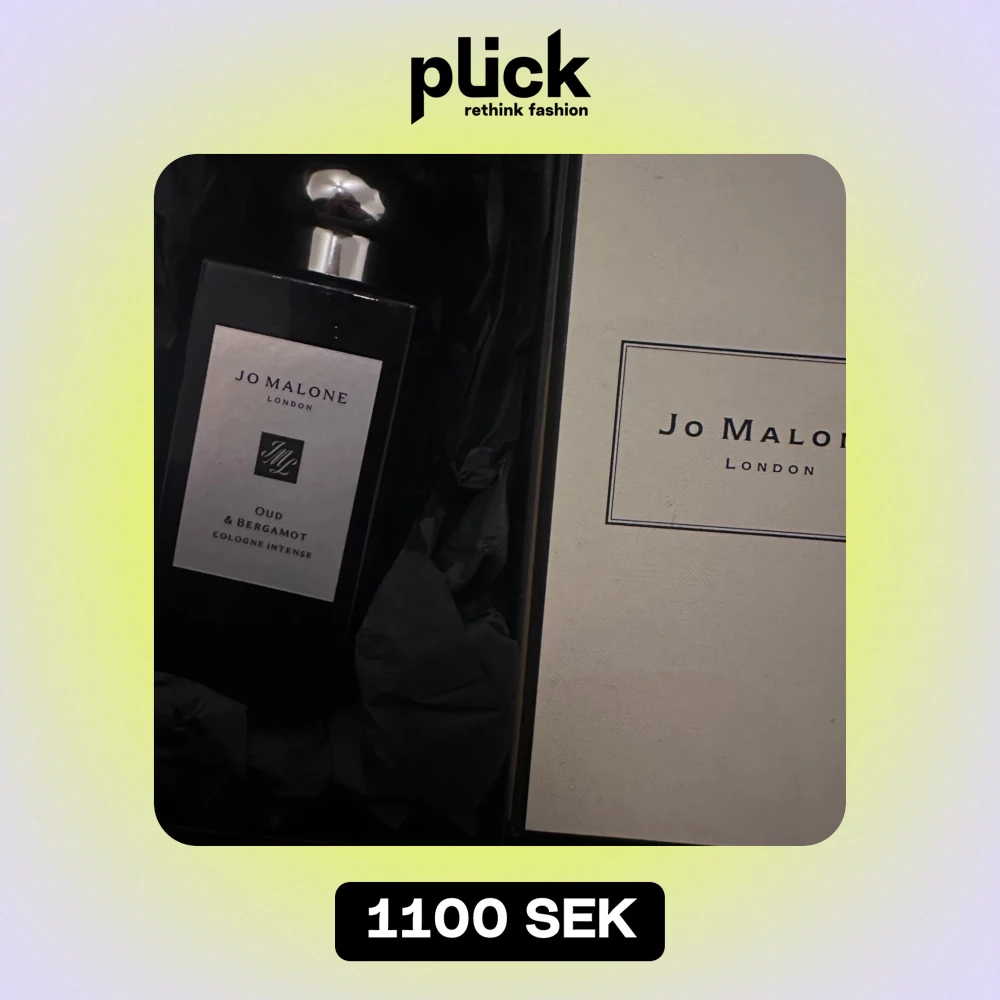 Säljer en lyxig parfym från Jo Malone, Oud & Bergamot Cologne Intense. Flaskan är elegant svart med en silverfärgad etikett och lock. Perfekt för den som älskar djupa och mystiska dofter. Kommer i originalförpackning.