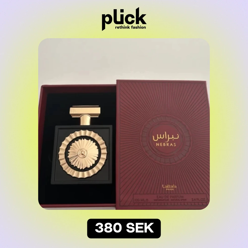 Parfymen Nebras Lattafa säljer jag för 380kr köpte för 480kr. En härlig vanilj, choklad och söt doftande parfym. Parfymen är mycket likt den populära Bille Ellish parfymen men starkare. Har endast testat den alltså 3-4 sprut. Pris kan diskuteras😍