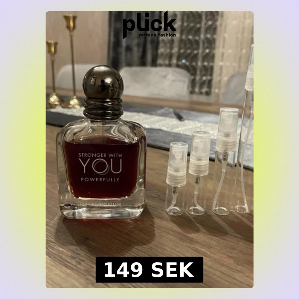 Emporio Armani Stronger With You Powerfully är en parfym med mörkröd vätska i en elegant, fyrkantig glasflaska med rund, metallisk kork. Flaskan har stilren design och tydlig logotyp framtill. Perfekt för dig som gillar exklusiva och moderna dofter.