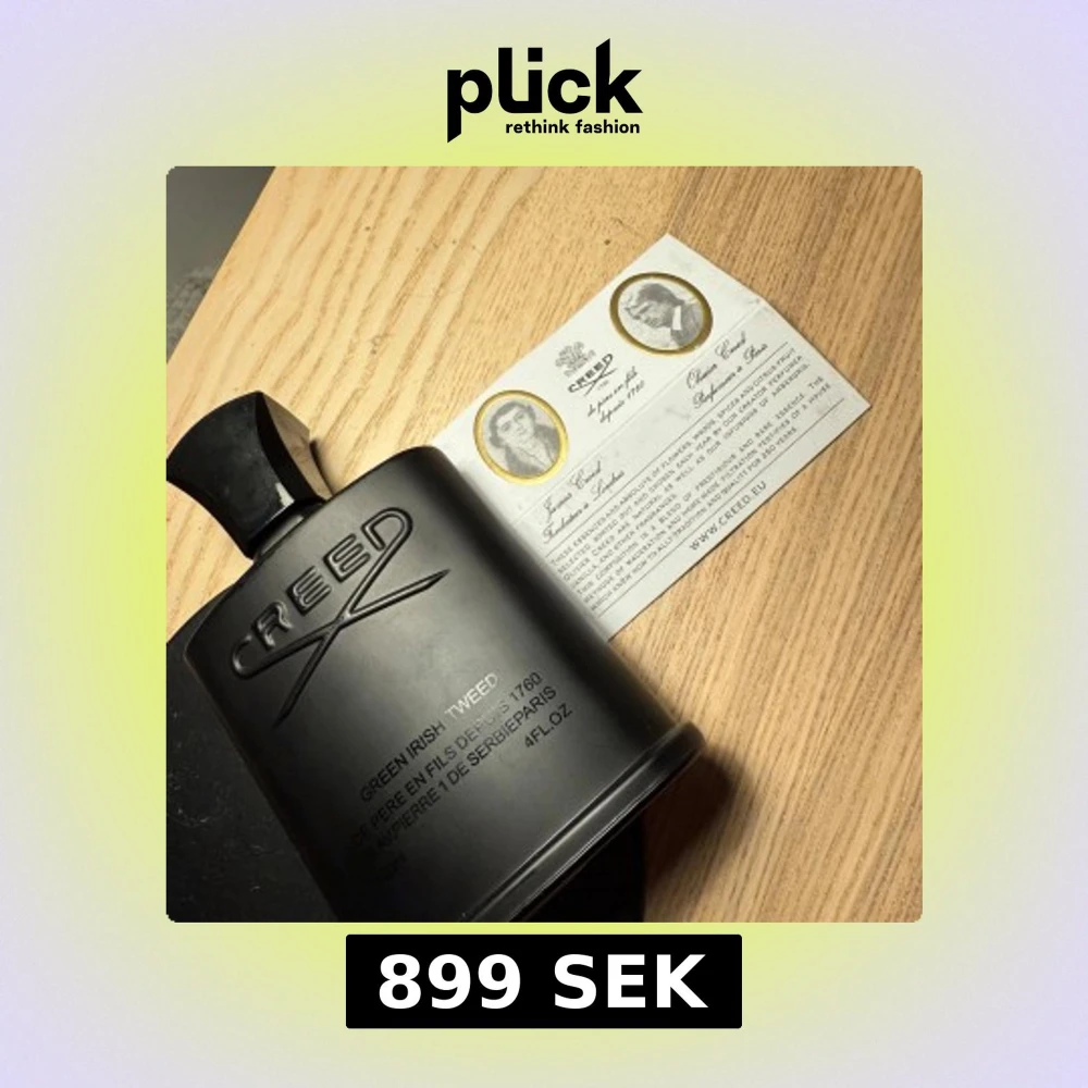Lyxig parfym från Creed, Green Irish Tweed, i en matt svart flaska med tydlig logga och elegant form. Säljer billigt då den för många är ett samlar objekt och boxen gick sönder i frakt😪 oanvänd bara testad en gång