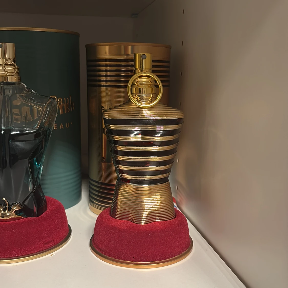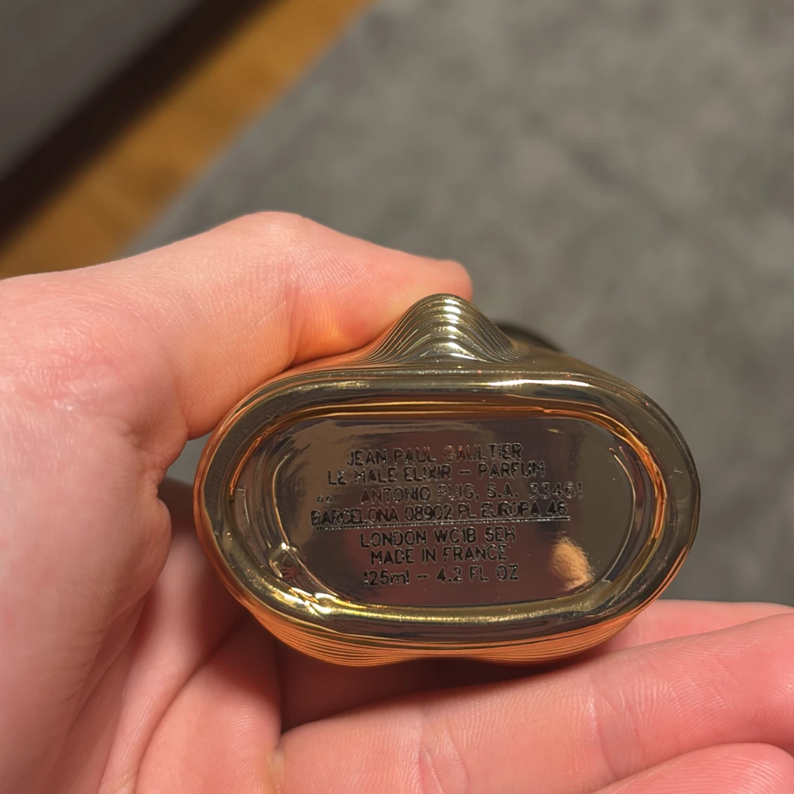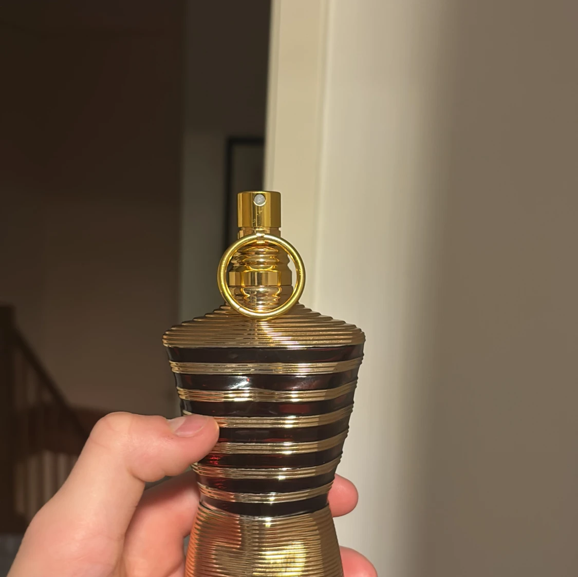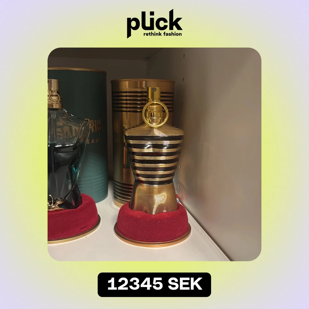 Säljer en flaska Le Male elexit från Jean Paul Gaultier. Flaskan är formad som en manlig torso med svarta och guldiga ränder, vilket ger en lyxig och stilren look. Perfekt för den som vill ha en elegant och maskulin doft. Flaskan rymmer 125 ml. 75 ml kvar och pris diskuteras