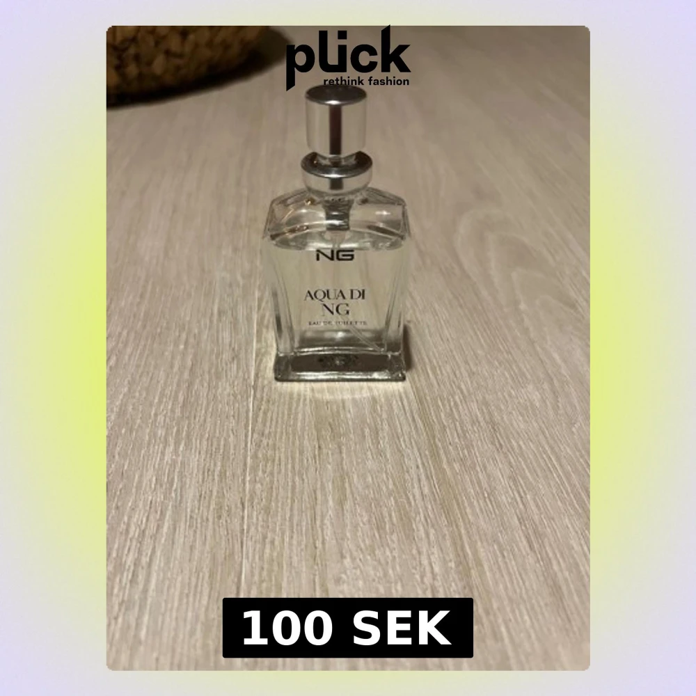 Aqua di NG Eau de Toilette är en parfym med fräsch och modern känsla. Flaskan är transparent med silverfärgad kork och har en stilren, fyrkantig form. Förpackningen är grå med subtilt mönster och eleganta detaljer. Perfekt för dig som gillar klassiska dofter.