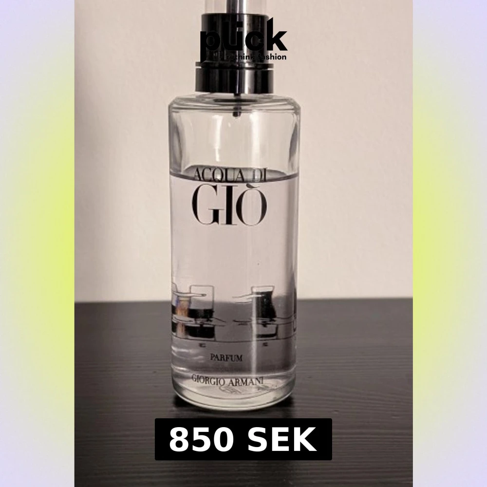Stilren parfym från Giorgio Armani med tydlig Acqua di Giò-design. Perfekt för dig som vill ha en klassiker i samlingen. Parfum-variant för extra intensitet. Volym och ingredienser syns ej på bilderna. C 120 ml kvar, refill flaska alltså ingen sprayer