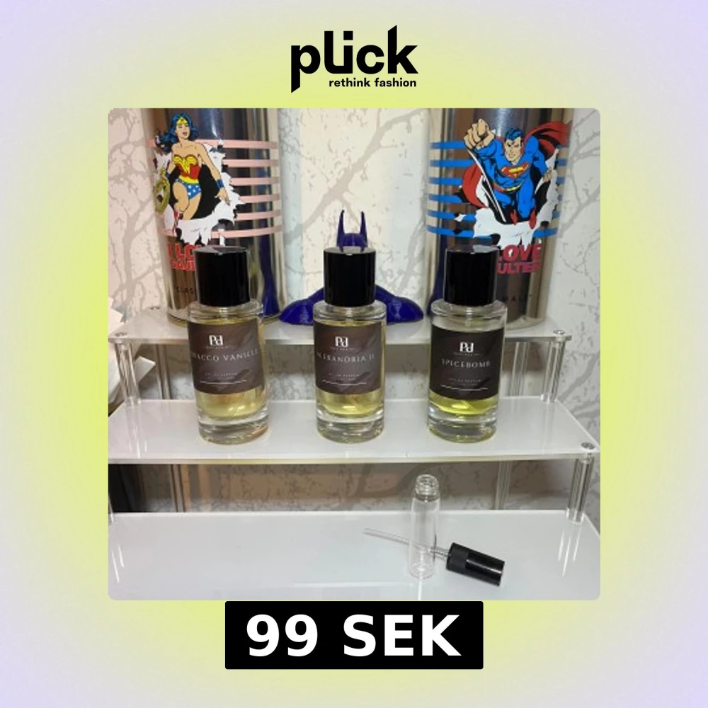 Upptäck tre unika dofter från Pd Parfums: Tobacco Vanille, Alexandria II och Spicebomb. Perfekt för dig som vill sticka ut med din egen stil. Flaskorna är stilrena och passar perfekt i samlingen. 5ml av varje! Decant .