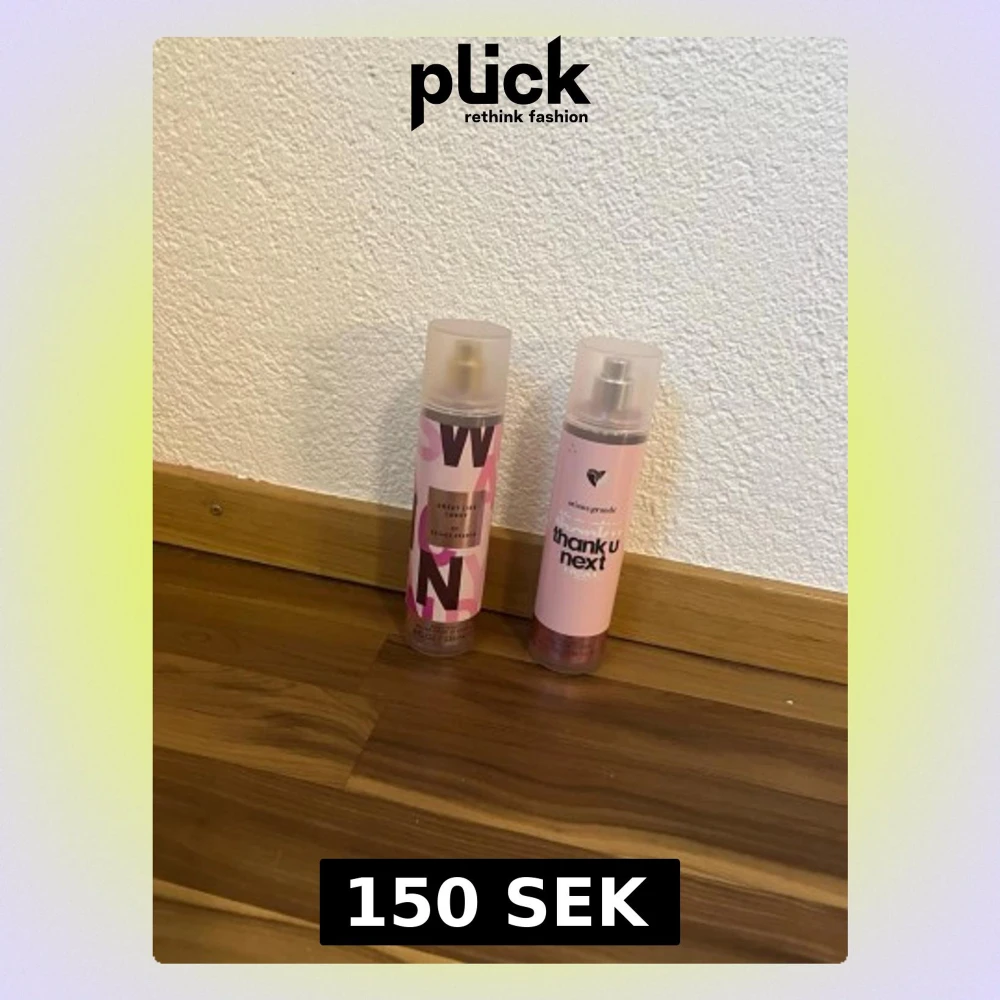 Två fräscha body mists: Sweet Like Candy och Thank U Next. Volym: 236 ml per flaska. Perfekta för dig som vill ha en lättare doft. Tillverkade i USA. Ingredienser och mer info finns på baksidan av flaskorna.