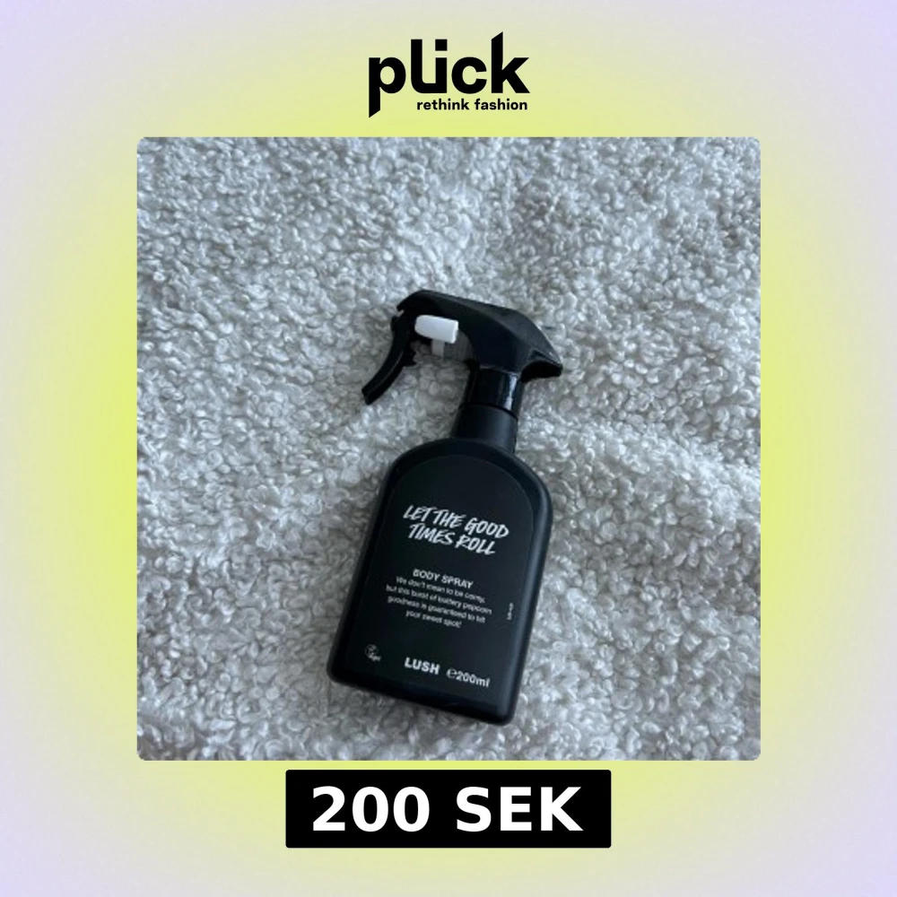 Säljer en 200 ml flaska av 'Let The Good Times Roll' body spray från Lush. Den har en söt och kryddig doft med inslag av popcorn. Perfekt för att fräscha upp både kropp och kläder med en långvarig doft. 90 % kvar av den, köptes i november!