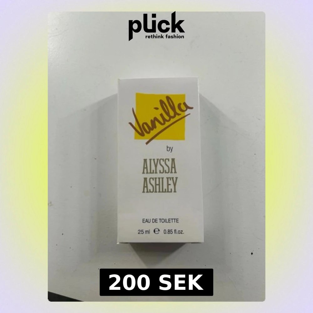 Vaniljdoftande Eau de Toilette från Alyssa Ashley i en stilren, rektangulär glasflaska med gul etikett och silverfärgat lock. Flaskan rymmer 25 ml och har en enkel, modern design som passar perfekt för dig som gillar söta och varma dofter. Endast testad en gång så i princip ny.