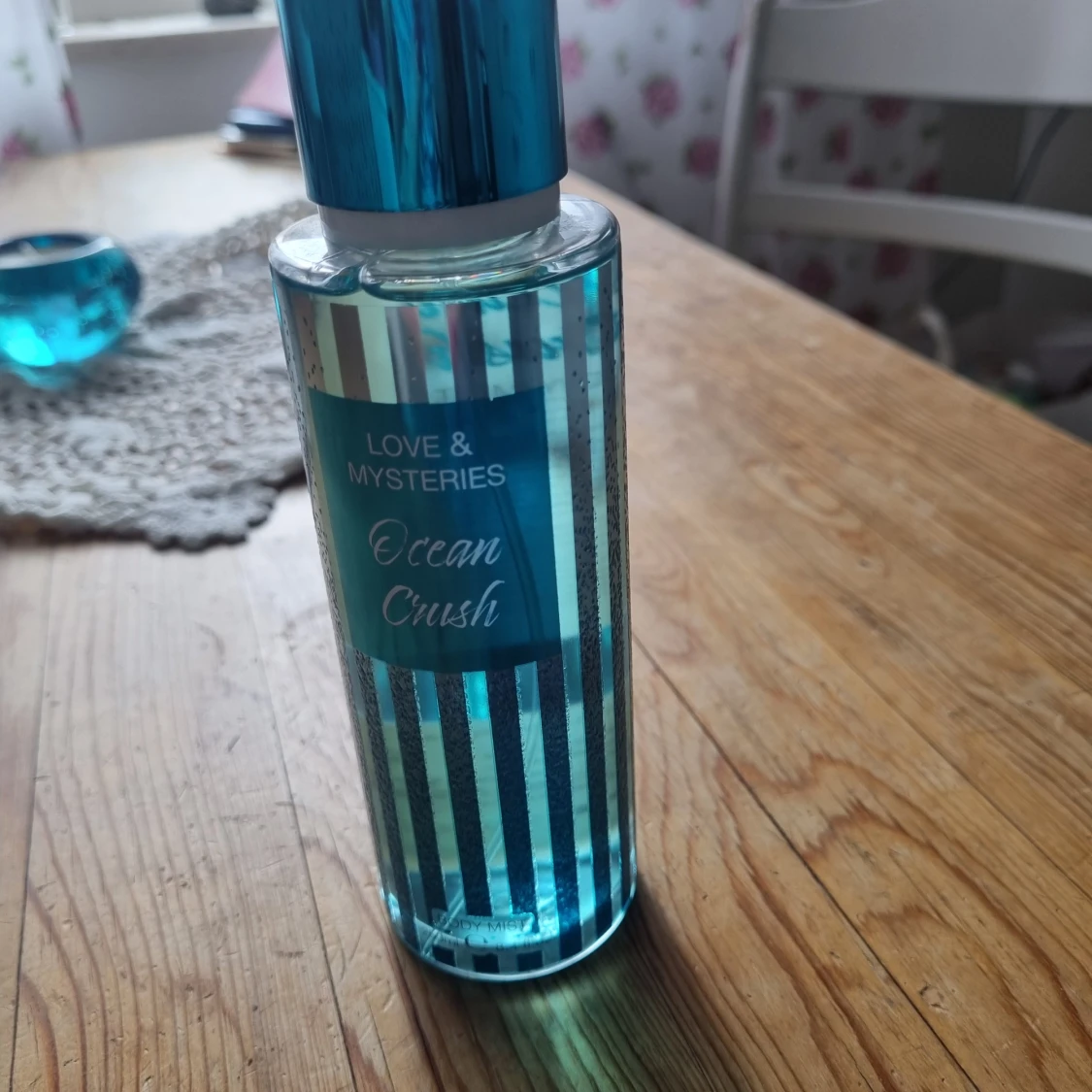 Fräsch body mist i blå plastflaska med silvriga ränder och blått lock. Doften heter Ocean Crush och ger en känsla av hav och sommar. Perfekt för dig som gillar lätta, fräscha dofter med en modern touch.