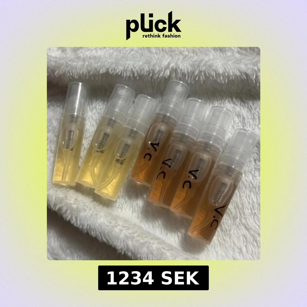 De ljusa till vänster är Qamrah Qahwa alla är i 2ml de till höger markerade med (V.C) är Van Cleef vanilla orchidee ☺️Van Cleef 80kr/st