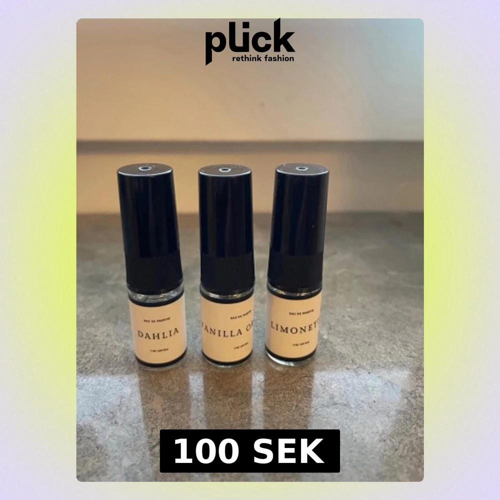 Tre små nya parfymprover med sprayfunktion från Curiosa. Dofterna är Dahlia, Vanilla Orchid och Limonetté. Perfekta att ta med i väskan eller testa olika dofter. Varje flaska rymmer 3 ml. Pris för alla tre.