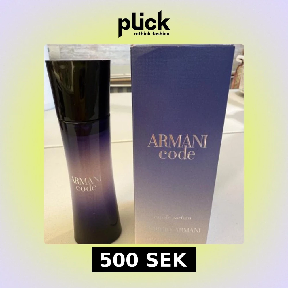 Armani Code Eau de Parfum från Giorgio Armani i en elegant flaska med svart till lila ombre och silvrig text. Parfymen kommer i originalkartong med samma stilrena design. Flaskan rymmer 30 ml och har en smal, böjd form som känns lyxig och modern. Endast tagit några få droppar från flaskan.