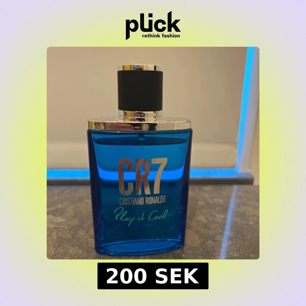 Fräsch parfym från Cristiano Ronaldo, CR7 Play it Cool. Flaskan är rektangulär i klarblått glas med silverdetaljer och svart lock. Modern design som sticker ut på hyllan och passar dig som gillar sportiga dofter. OBS har använts väldigt lite men ungefär 28 ml kvar.