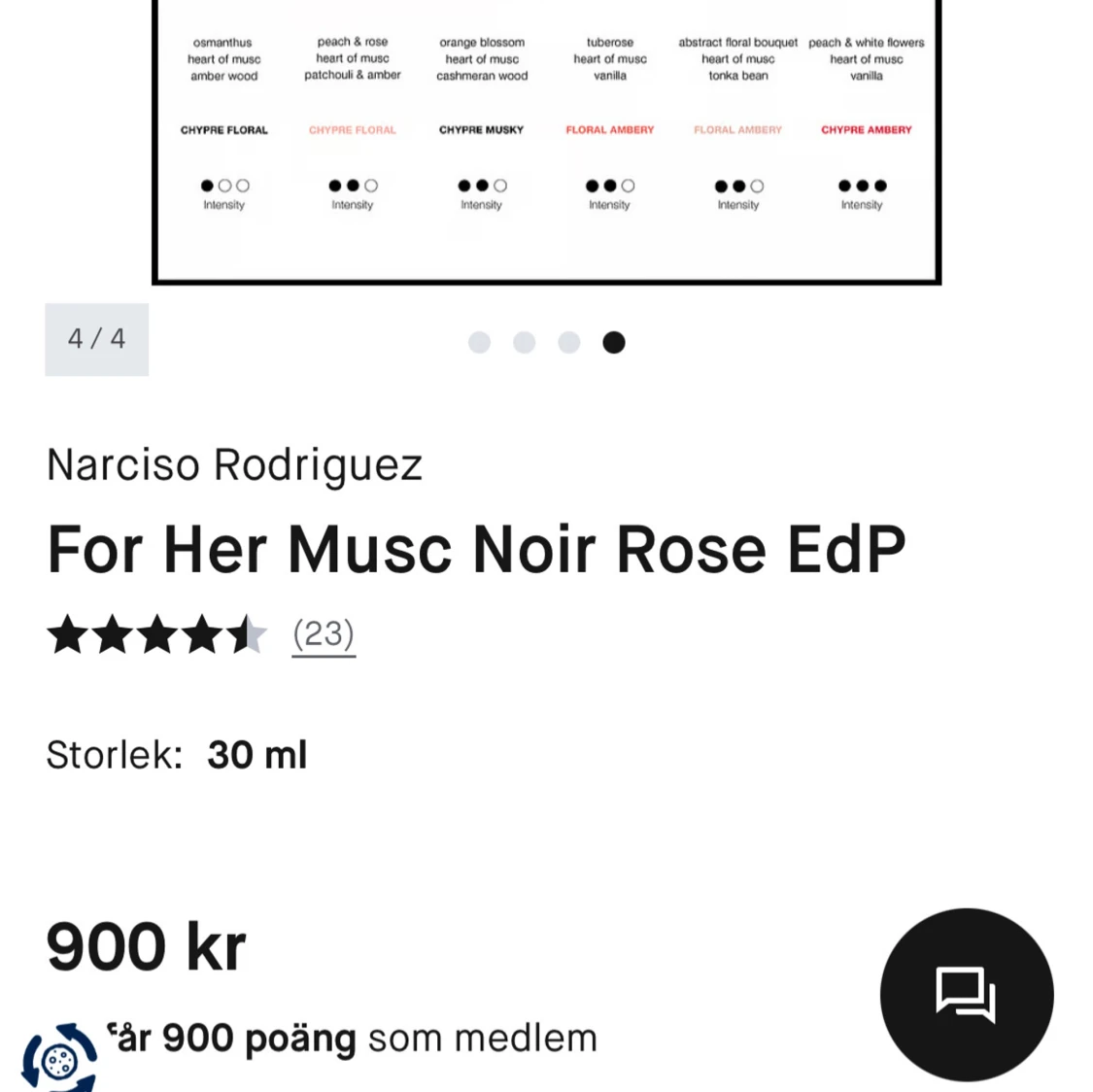 Trendig parfym från Narciso Rodriguez – For Her Musc Noir Rose EdP. 30 ml , perfekt storlek att ta med. Nypris 900kr!