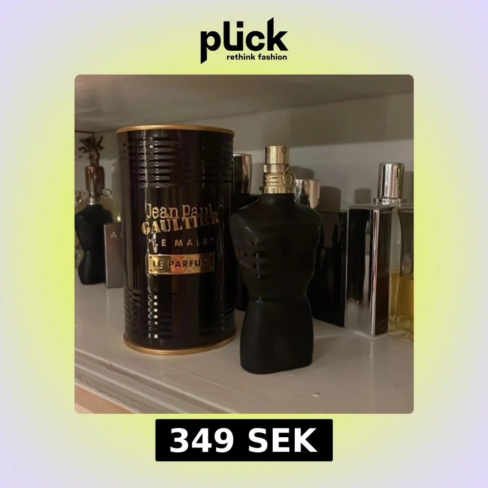 Säljer en elegant parfym från Jean Paul Gaultier, Le Male Le Parfum. Flaskan är formad som en svart torso med gulddetaljer, vilket ger en lyxig känsla. Doften är intensiv och maskulin, perfekt för den som vill sticka ut.