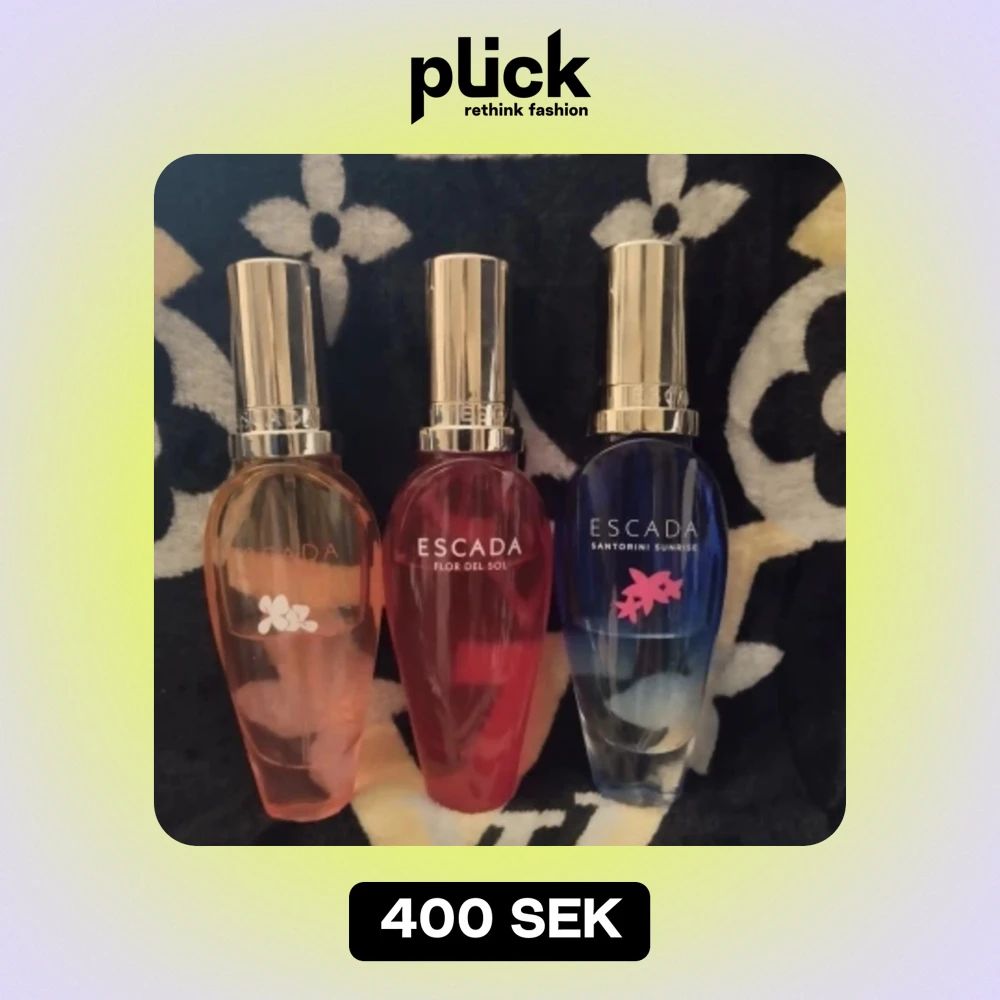 3st olika parfymer från Escada se bild för att uppskatta mängden som är kvar. den röda skulle jag gissa på ca 80% dom andra två nästan 50%