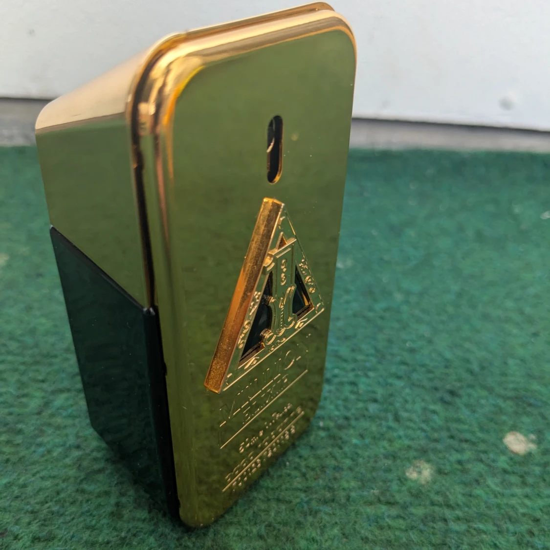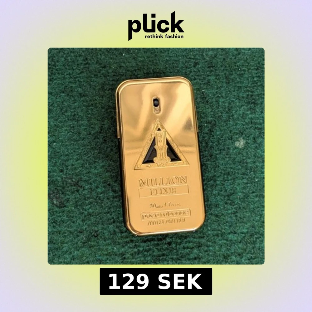 Snygg parfymflaska i guld och svart från Paco Rabanne, 1 Million Elixir. Flaskan har en rektangulär form med en lyxig guldfinish och detaljerad gravyr framtill. Rymmer 50 ml och har en ikonisk design som sticker ut i badrumshyllan. Den är tom!