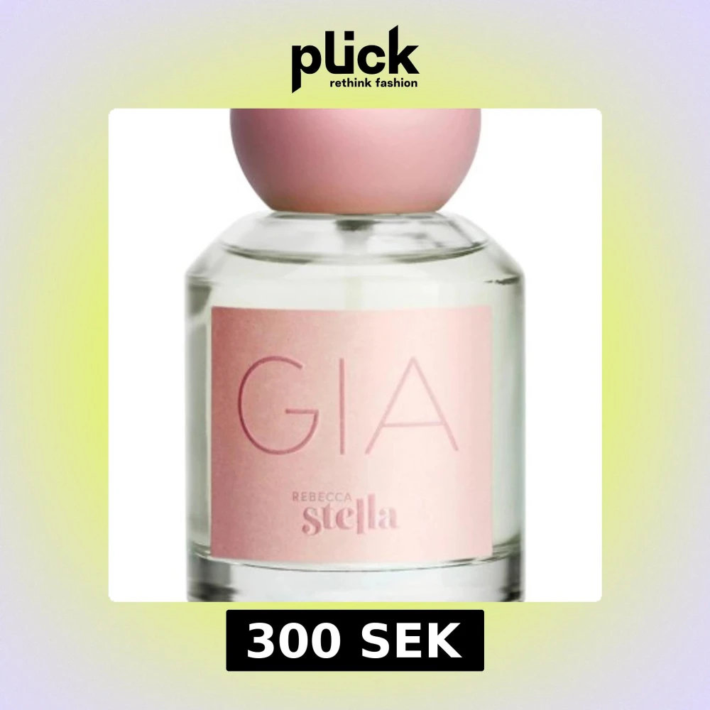 Snygg parfymflaska från Rebecca Stella med namnet GIA. Flaskan är genomskinlig med en ljusrosa etikett och ett matchande rundat rosa lock. Perfekt som en fin detalj på sminkbordet och doftar fräscht och feminint. Perfekt present