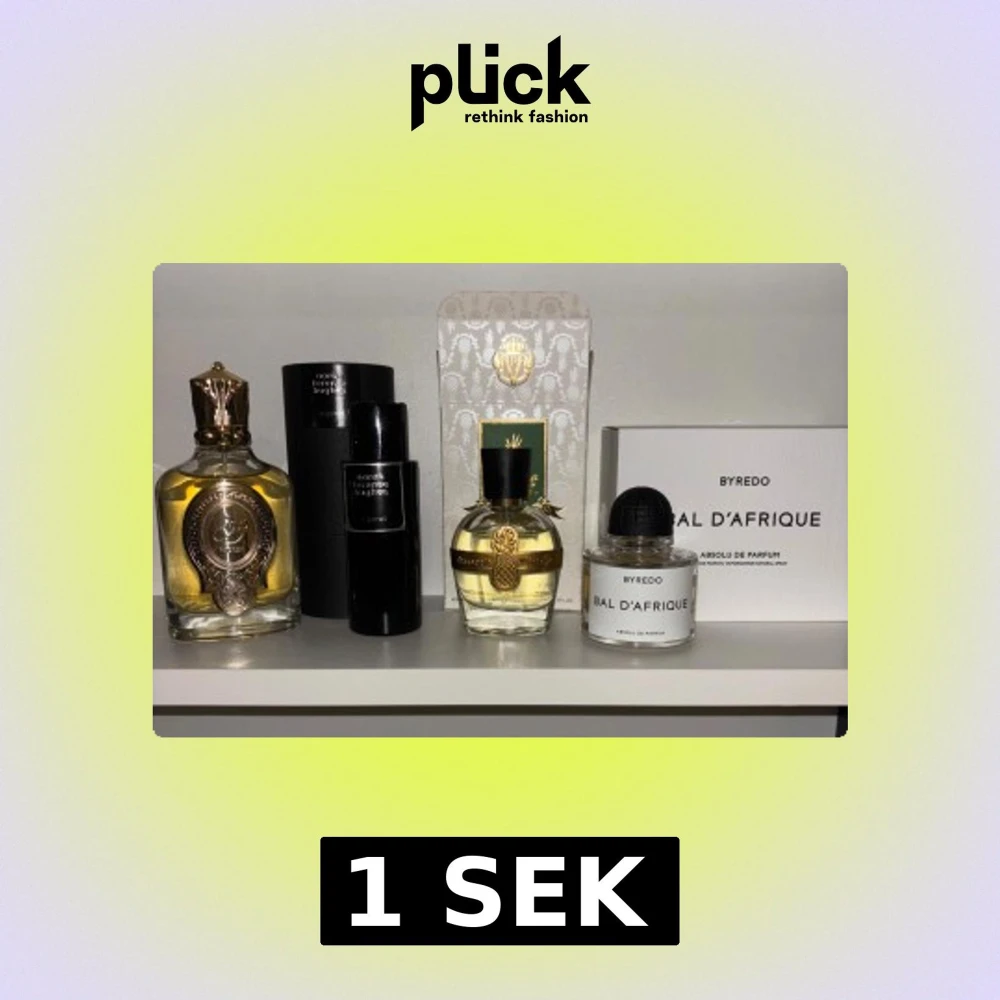 Säljer parfymer Bal D Afrique Absolu, cirka 41-42/50 ml? Uppskatta mängd själv, 1500 kr ATH Legend ca 42/50 ml, 900 kr. Pineapple emperor extrait, 50 ml flaska, uppskatta mängd själv, 900 kr och Paris Corner Nouf 100 ml flaska, 100 kr. Kvitto finns till samtliga parfymer, förpackning till alla förutom Paris Corner Nouf. Paketpris kan fixas
