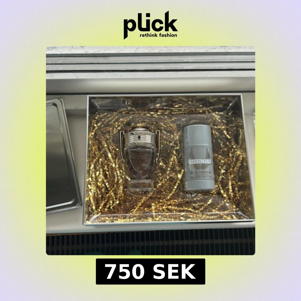 Snyggt presentset från Paco Rabanne med Invictus-parfym och deostick. Parfymflaskan har en unik troféform och deosticket matchar i stilren design. Perfekt för den som vill dofta fräscht och maskulint. Kommer i en elegant silverfärgad förpackning.