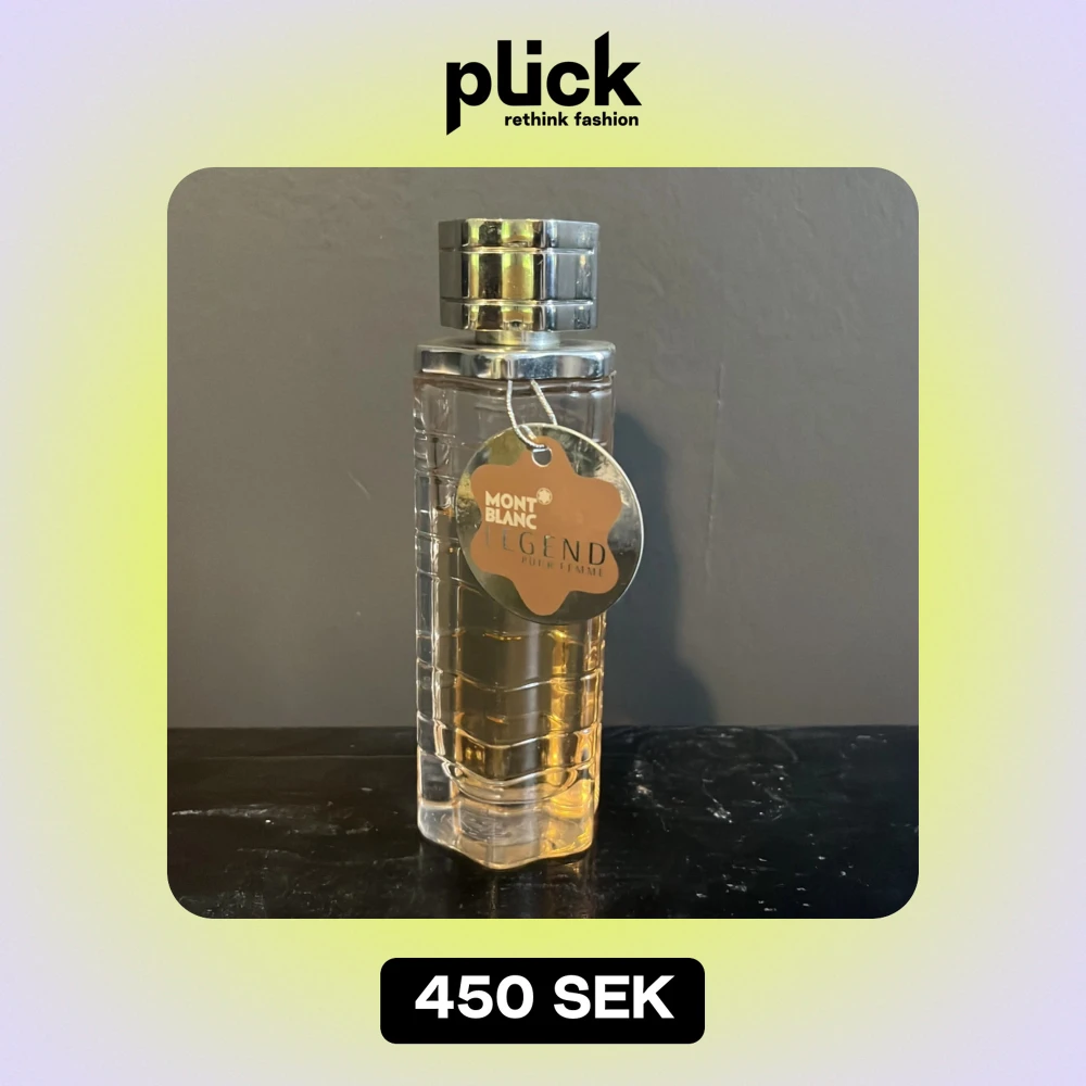 Säljer en elegant Mont Blanc Legend Pour Femme parfym. Flaskan är stilren och genomskinlig med ett silverfärgat lock. Perfekt för den som vill ha en sofistikerad doft i sin samling. Passar både till vardags och festliga tillfällen.